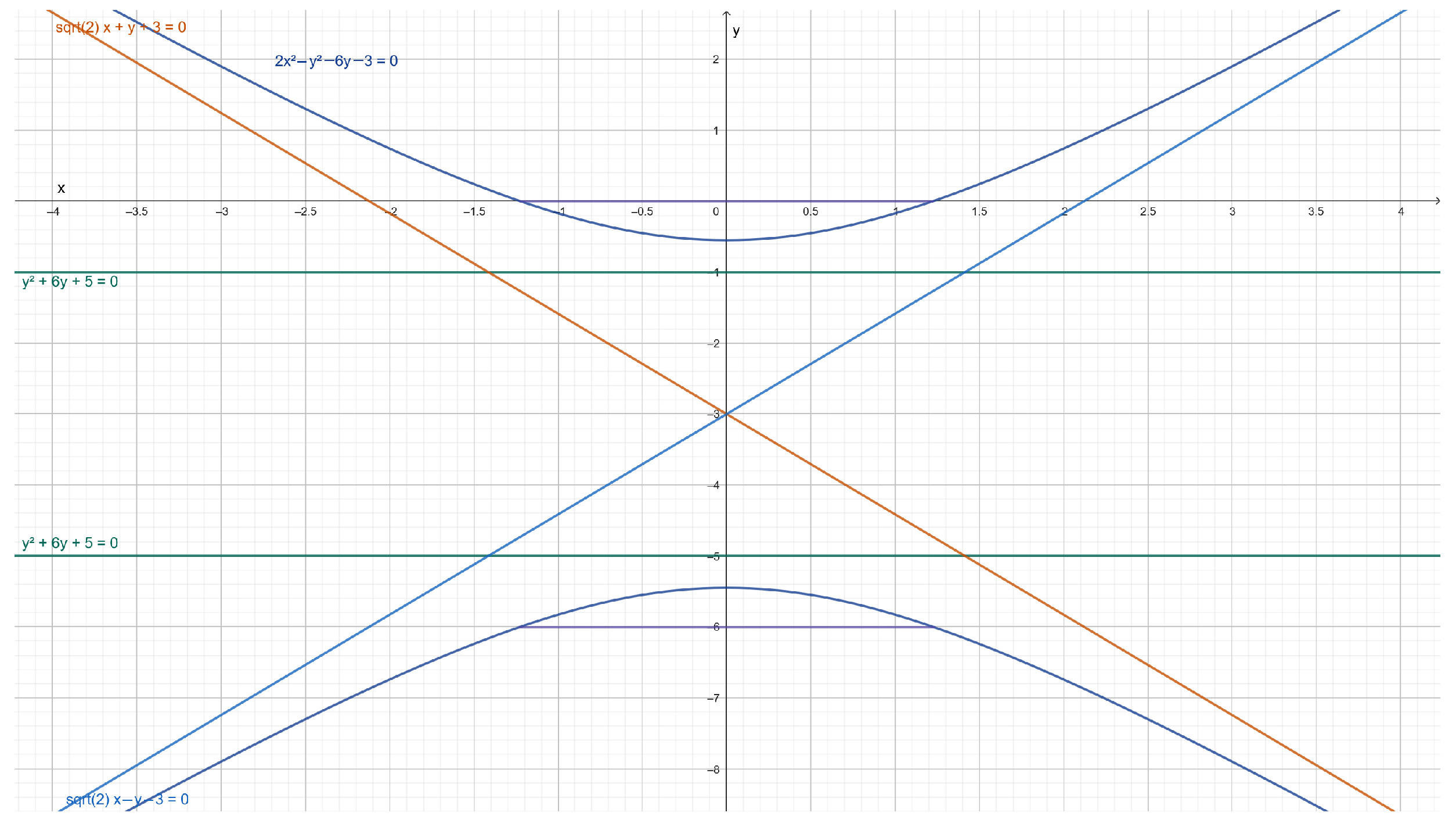 - If , then the equation of the locus in question without rotations and translations is given as follows:where Δ is as in (5).