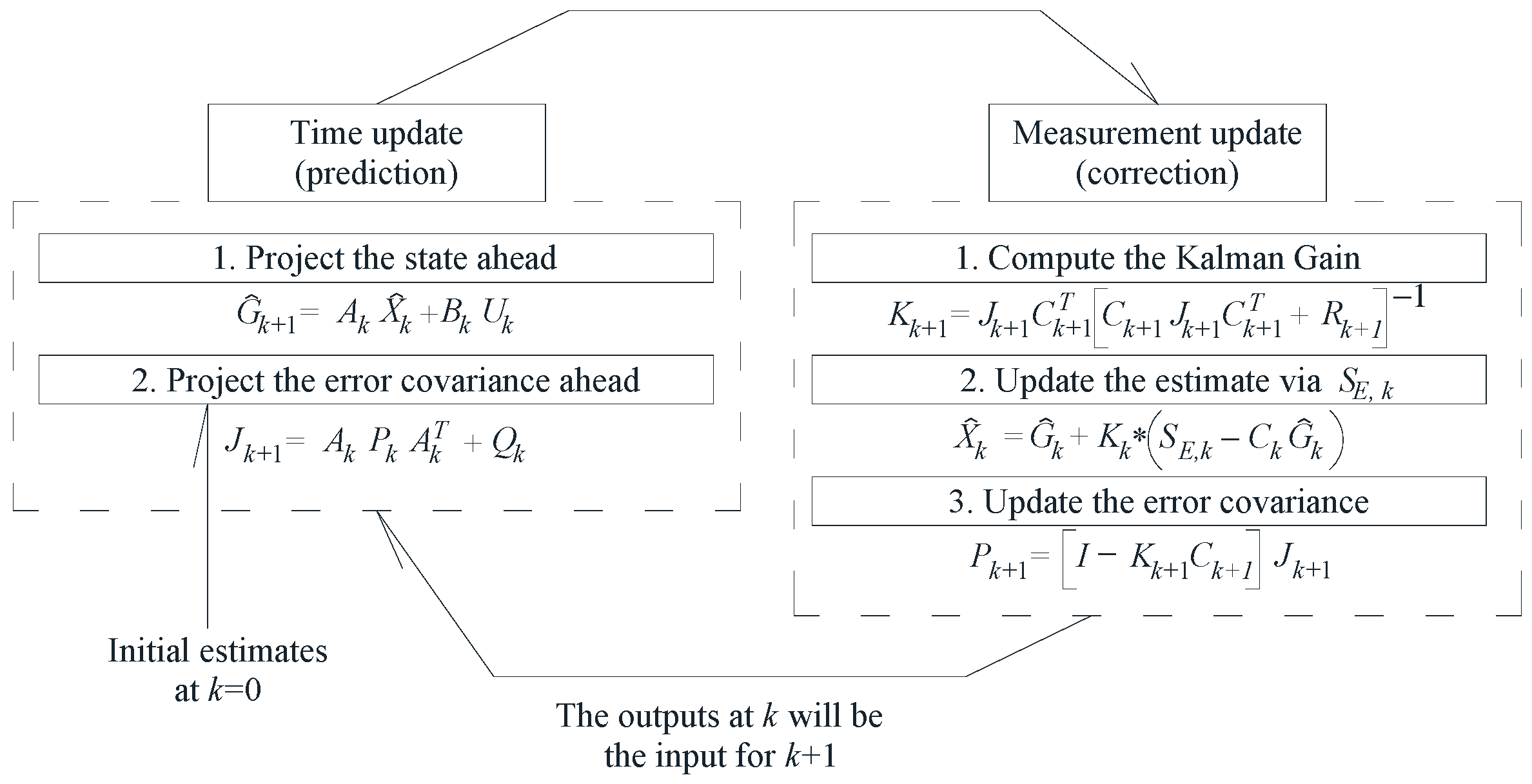 13] as a recursive algorithm for linear quadratic estimation, its operation is delineated in a recursive predict-correct cycle (see