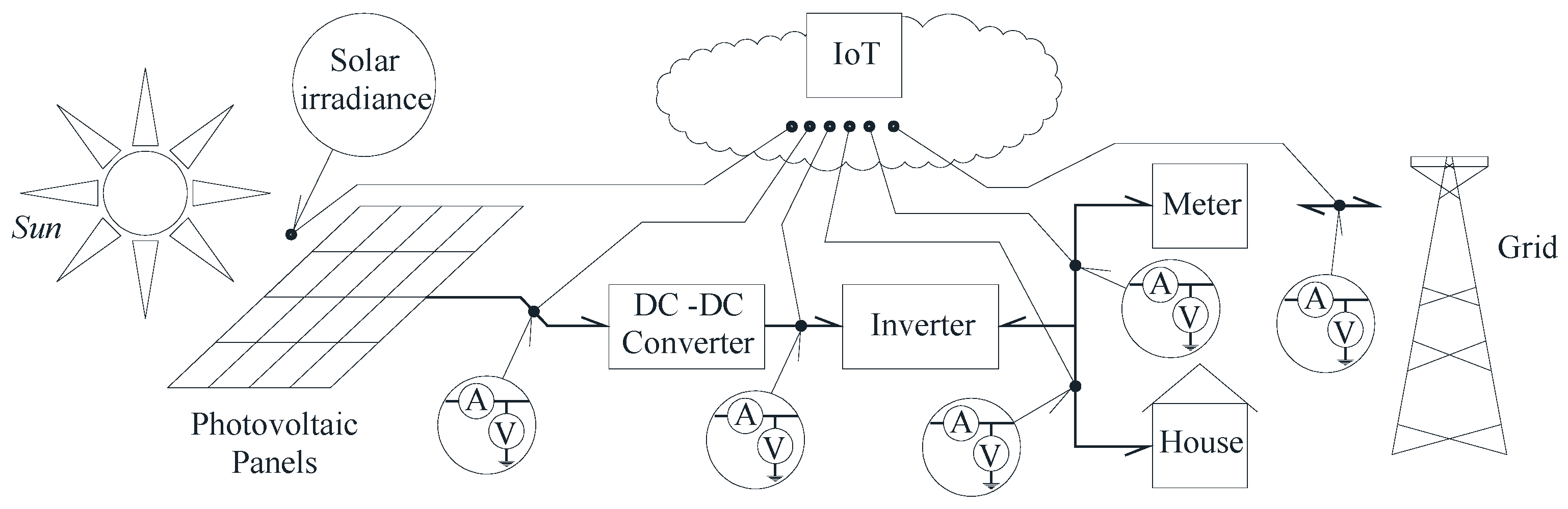 Section 3 presents the architectural design and implementation of the IoT photovoltaic monitoring platform and the results of the electrical parameter reconstruction using the Kalman Filter;