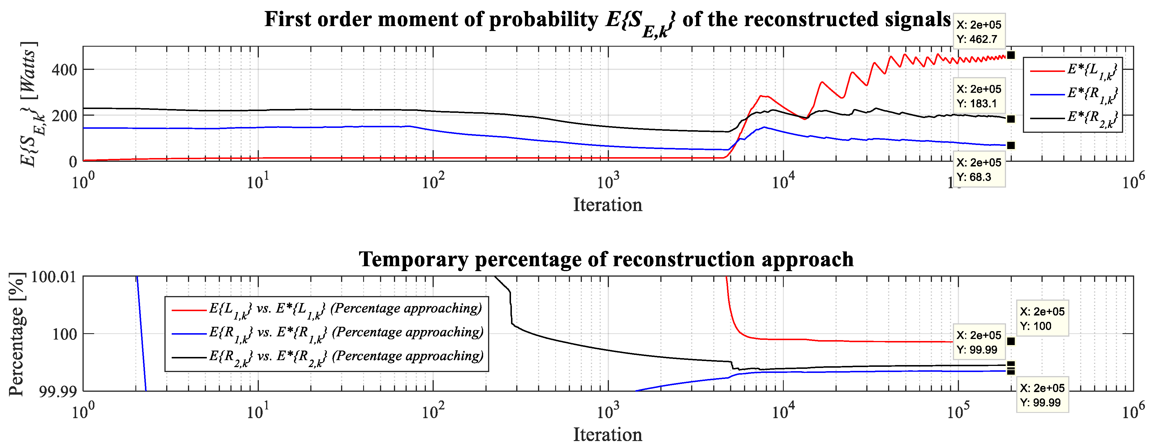 compared to the real values. Despite this initial discrepancy, the system’s performance improves markedly over time, with the reconstructed values achieving a convergence very close to 100% relative to the actual measurements at the vast majority of points.