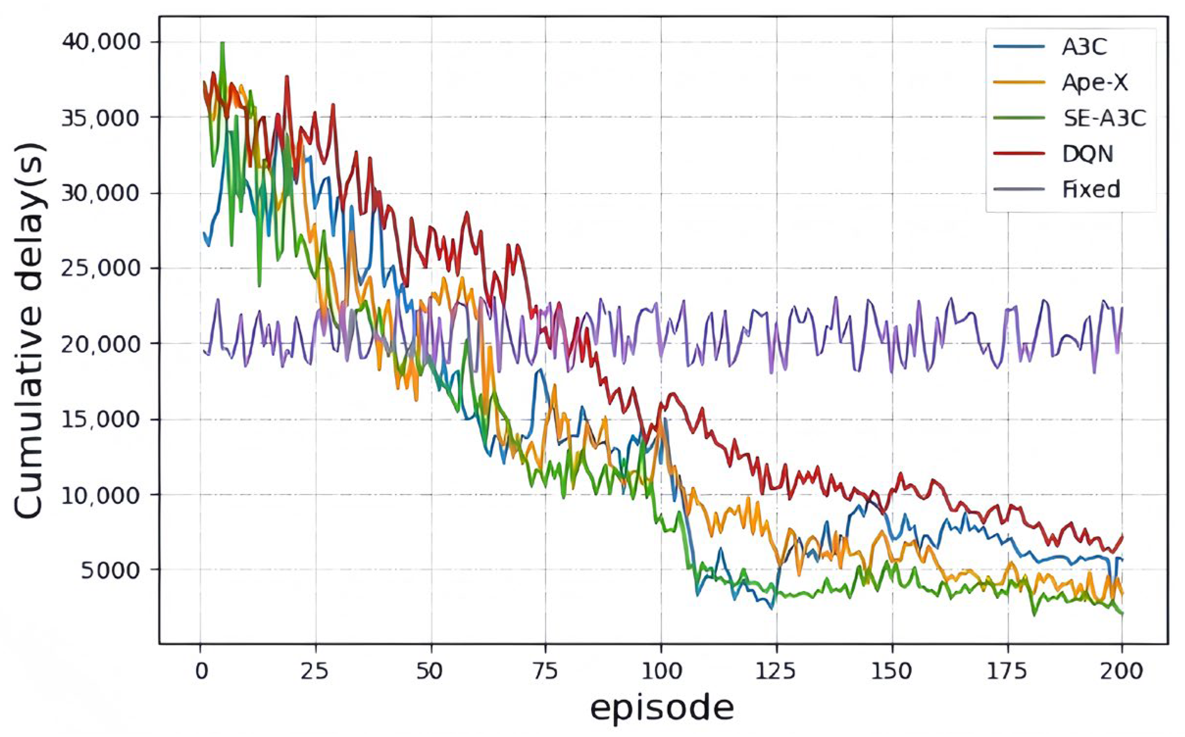 As research progresses, scholars continue to explore the potential of multi-agent approaches in urban traffic management and attempt to optimize algorithms to tackle complex traffic signal control problems. In addition to optimizing intersection signal control, some researchers focus on more complex traffic environments. Mei et al. [16] noted that current research predominantly focuses on intersections within cities, with limited attention given to the impact of rail information. As a result, they refined the reward function coefficients and used SUMO simulation software to construct urban and rail intersections. Through simulations with two deep reinforcement learning algorithms, they demonstrated the effectiveness of deep reinforcement learning in such contexts.