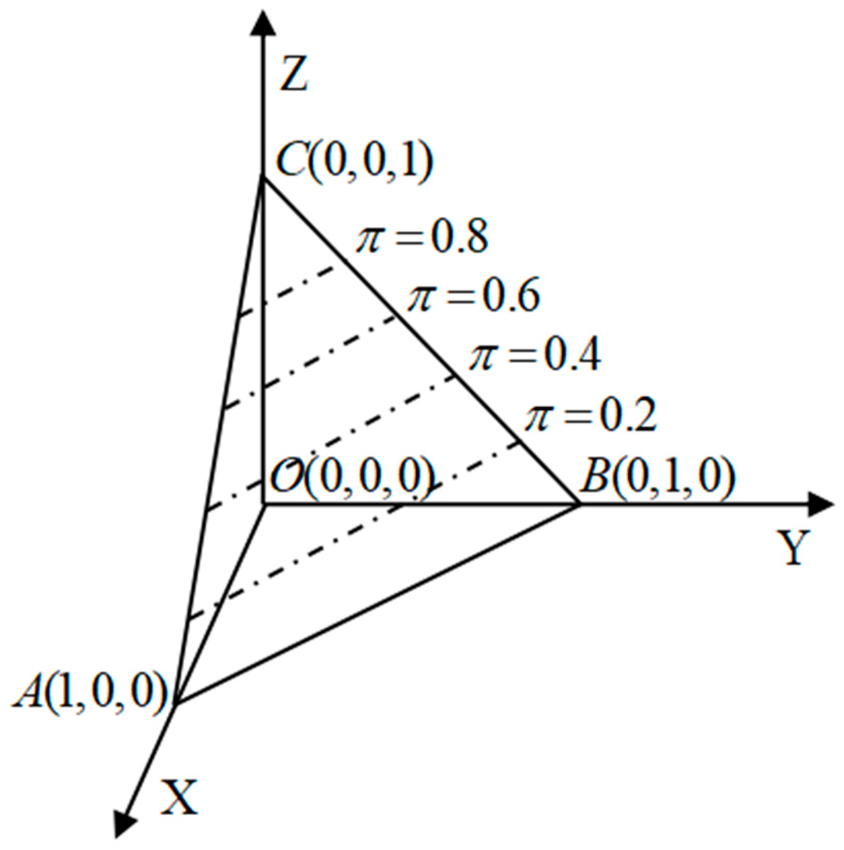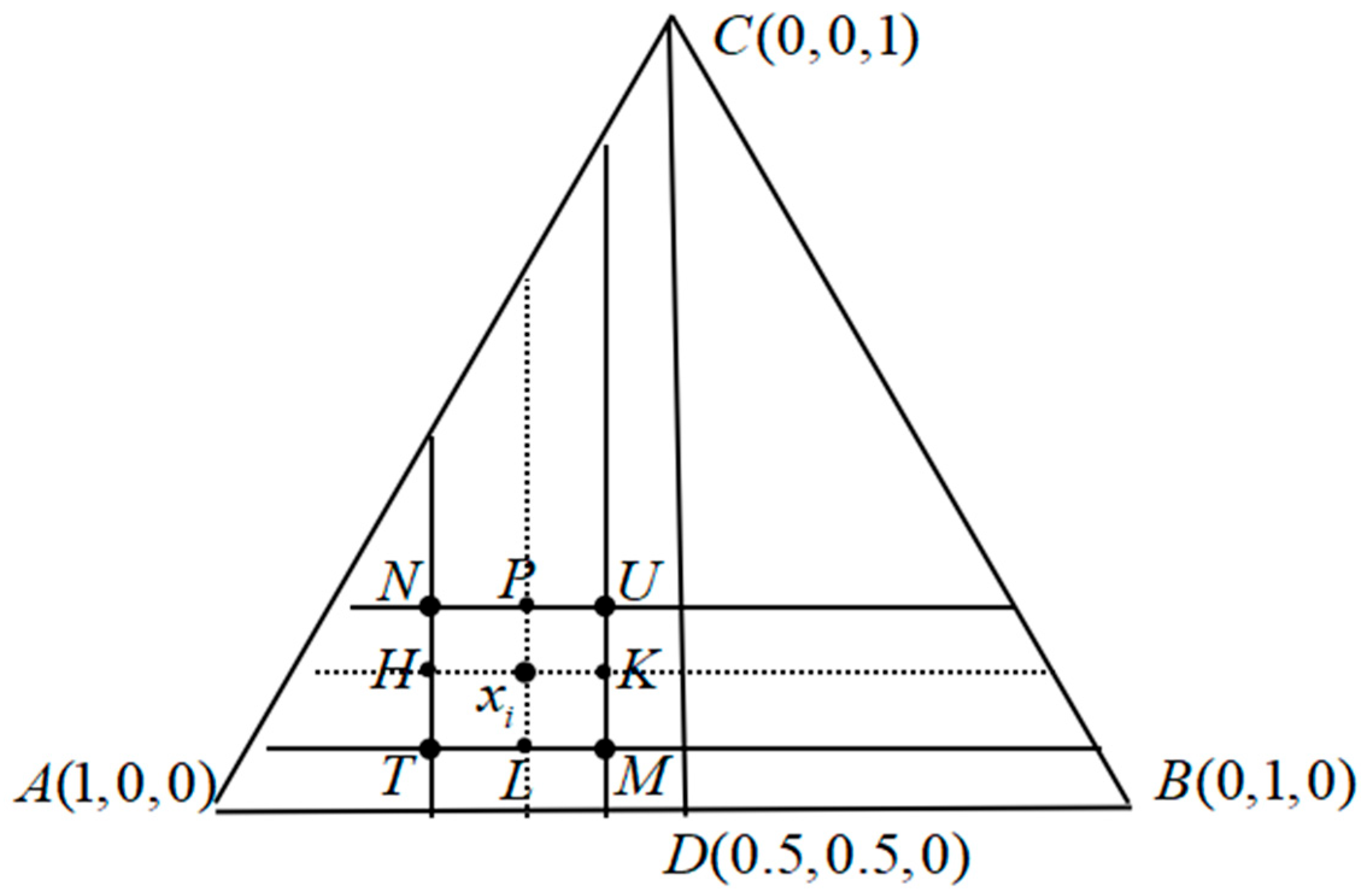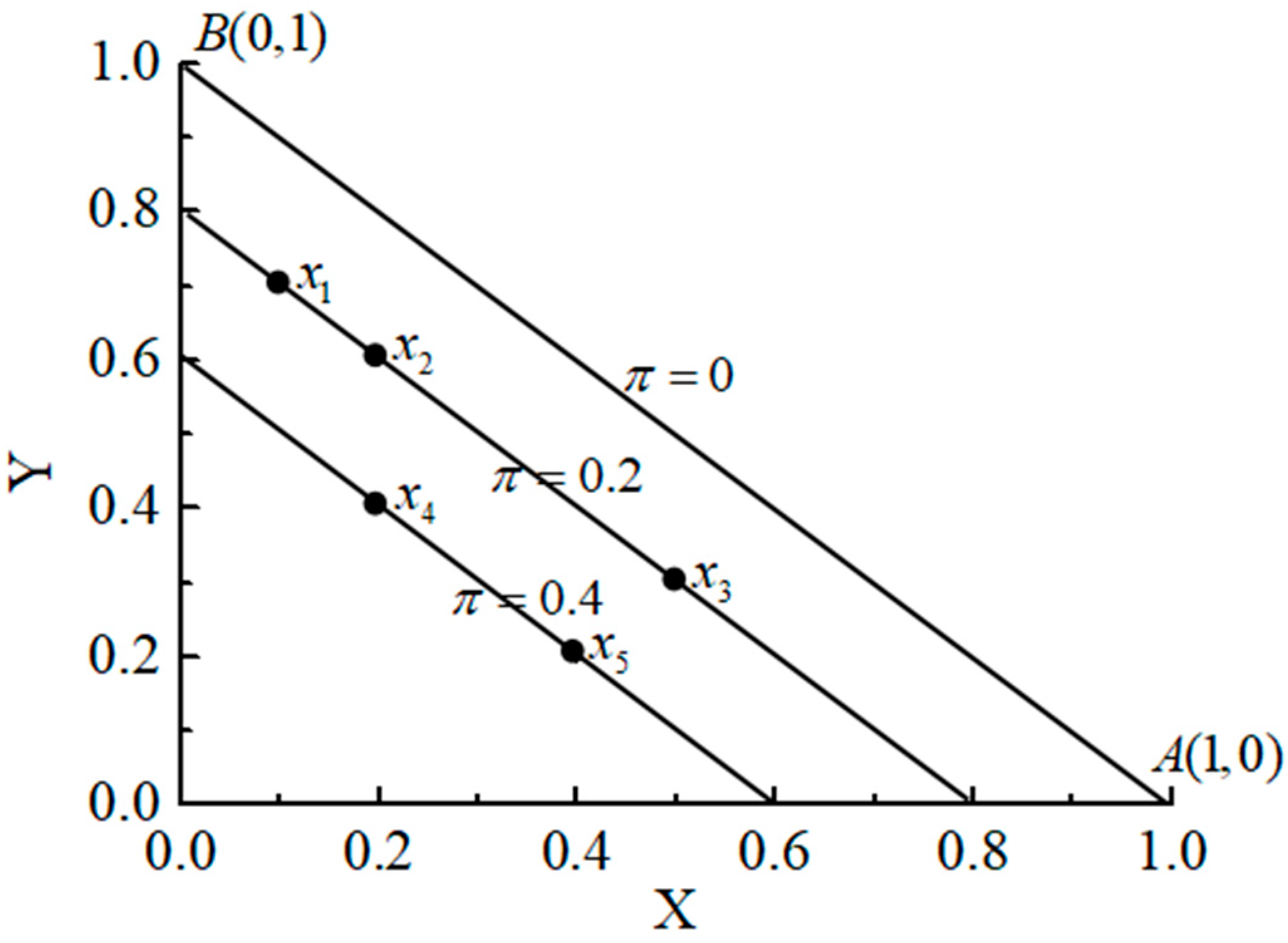 - Obviously, intuitionistic fuzzy entropy changes continuously with different in interval [0,1]. Find any point in , then draw some lines paralleled to and , as it shows in Figure 6.