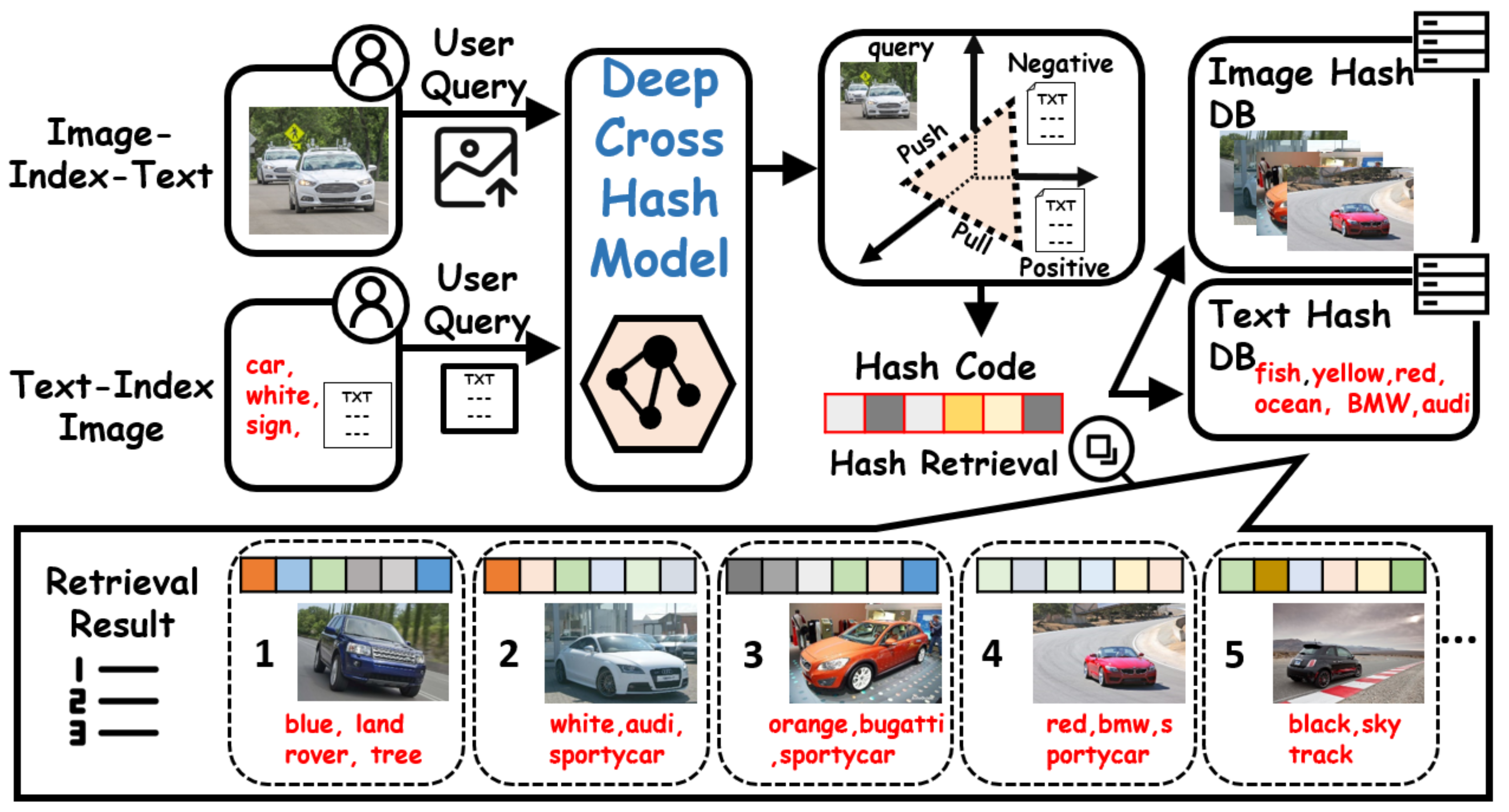 - Hashing all the cross-modal data and storing them in the database for retrieval.