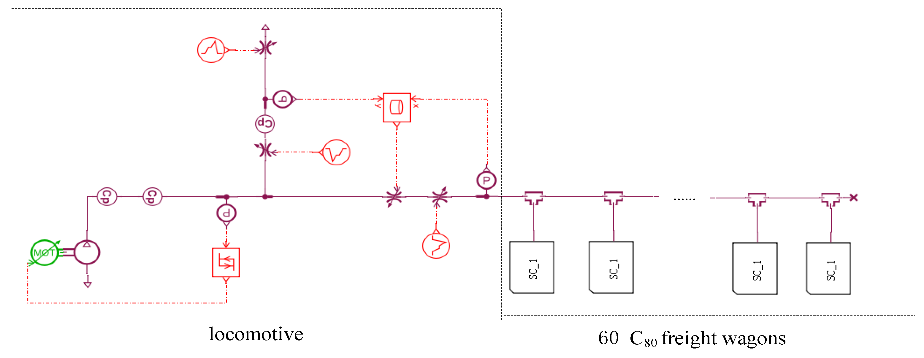 Simulation model of traditional train air brake system.