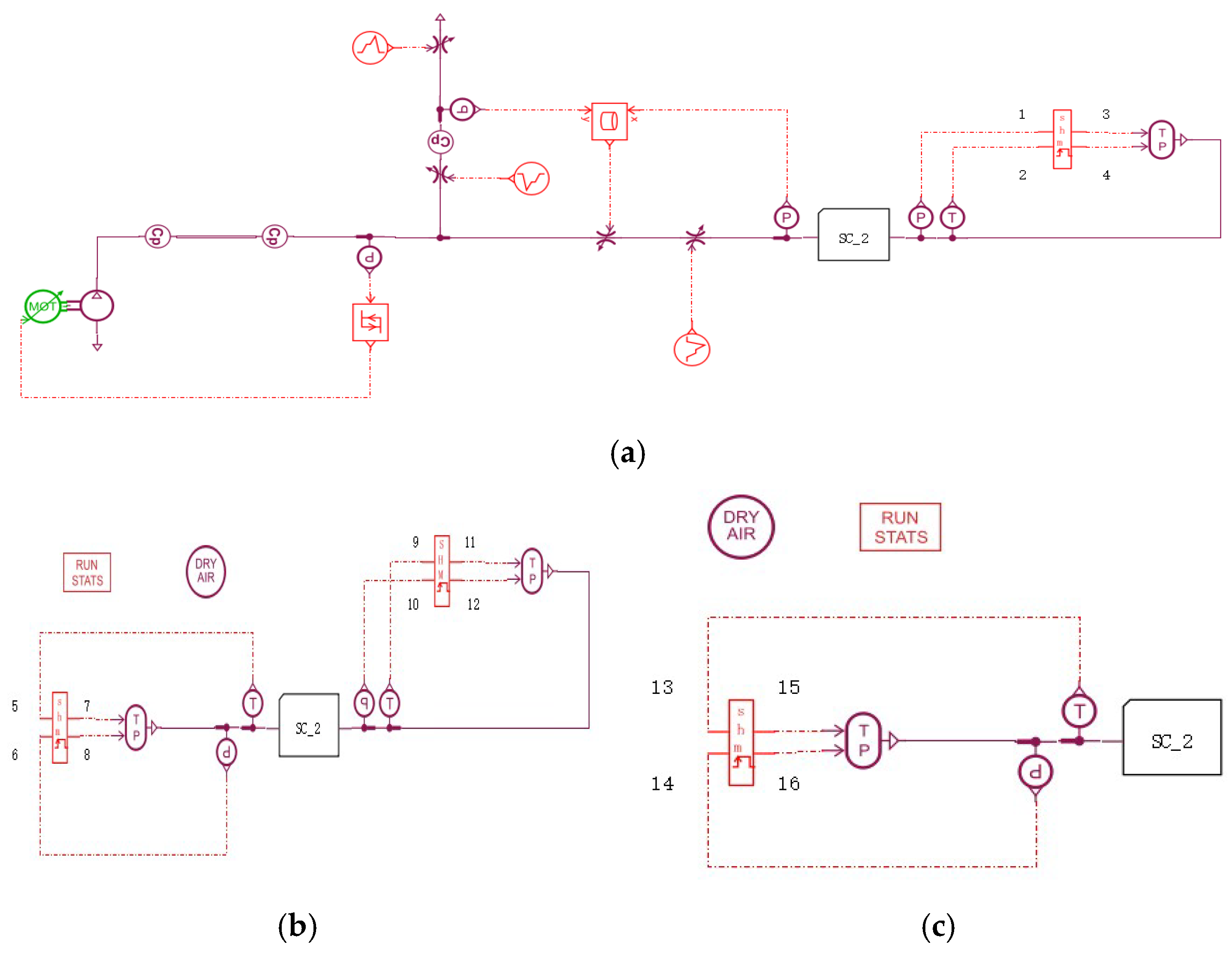 Parallel simulation model. (a) The first sub-model; (b) The second sub-model; (c) The third sub-model.
