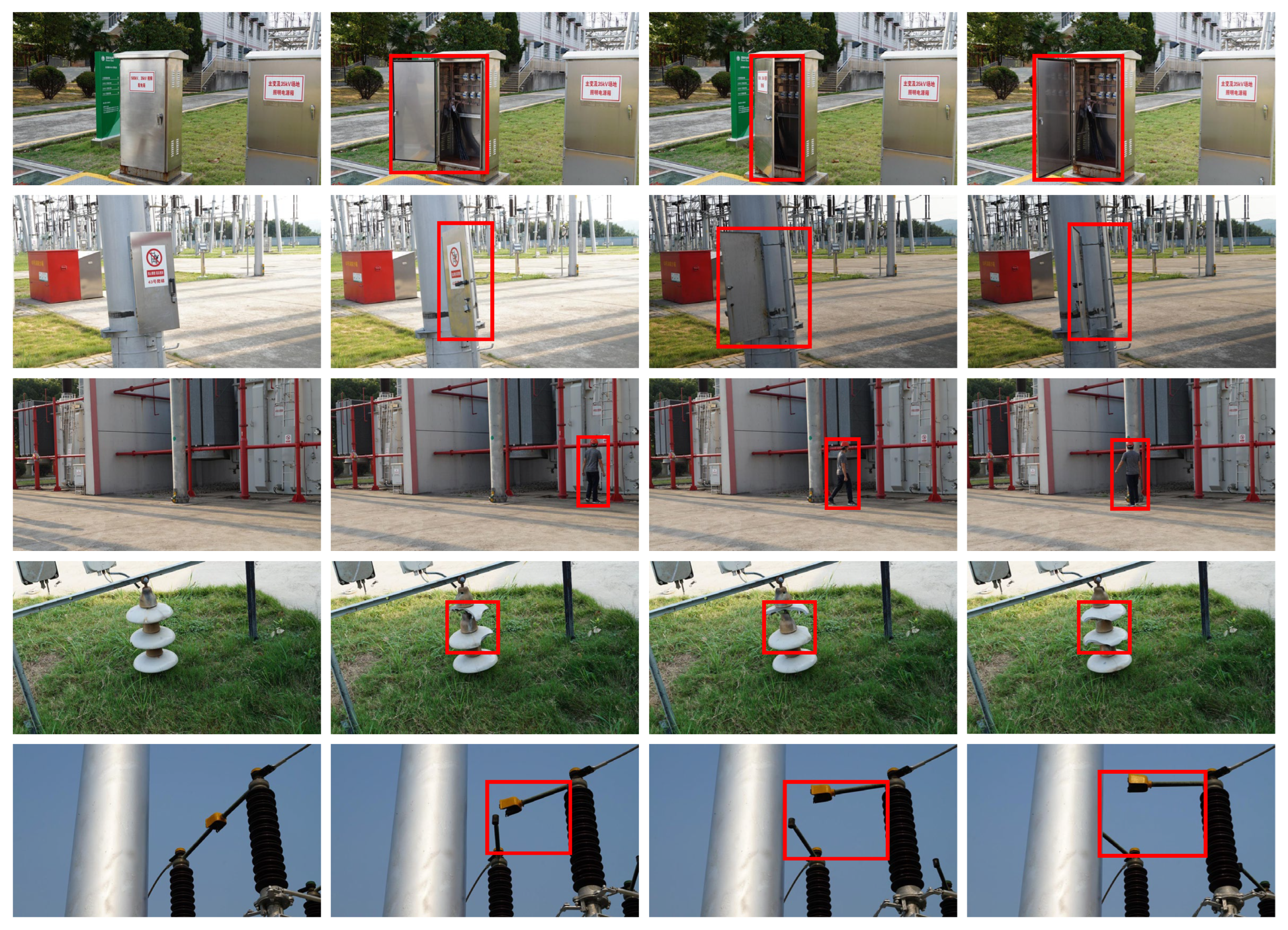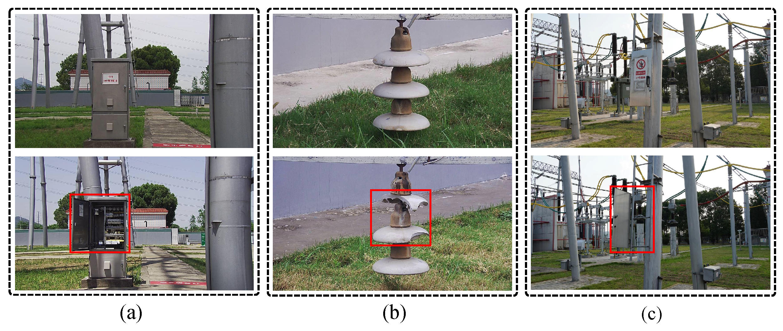 - Wang, P.; Zhao, C.; Zhou, H.; Su, Z.; Wang, J.; Wang, W. Anti-interference defect detection of substation equipment based on multitemporal inspection images. Control Decis. 2024, 39, 885–892. [Google Scholar] [CrossRef]