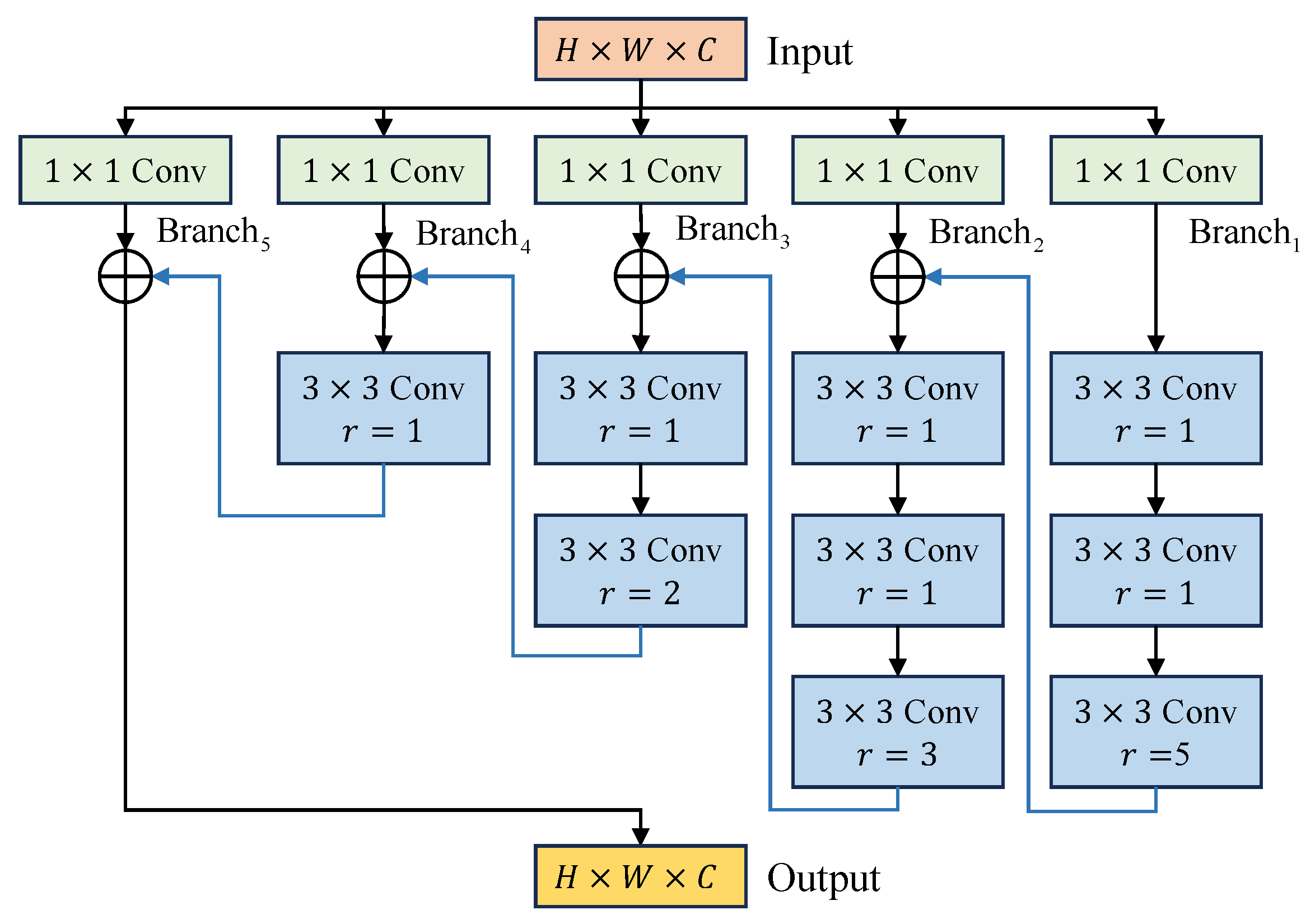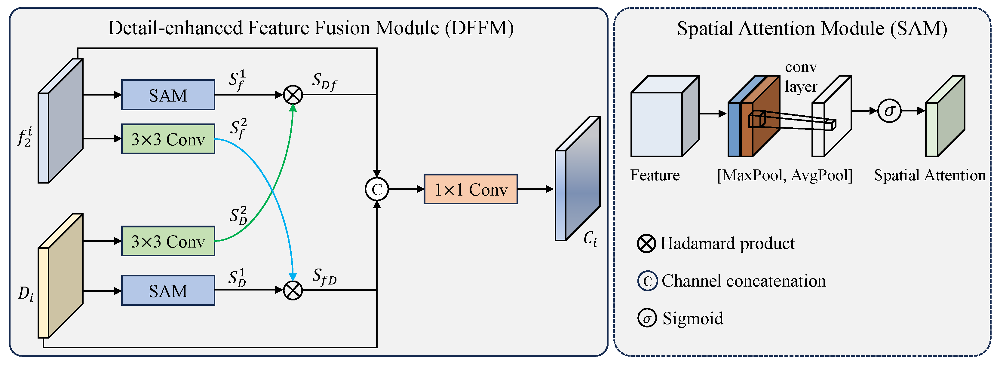 - Finally, concatenate , , and along the channel dimension to obtain the fused feature .