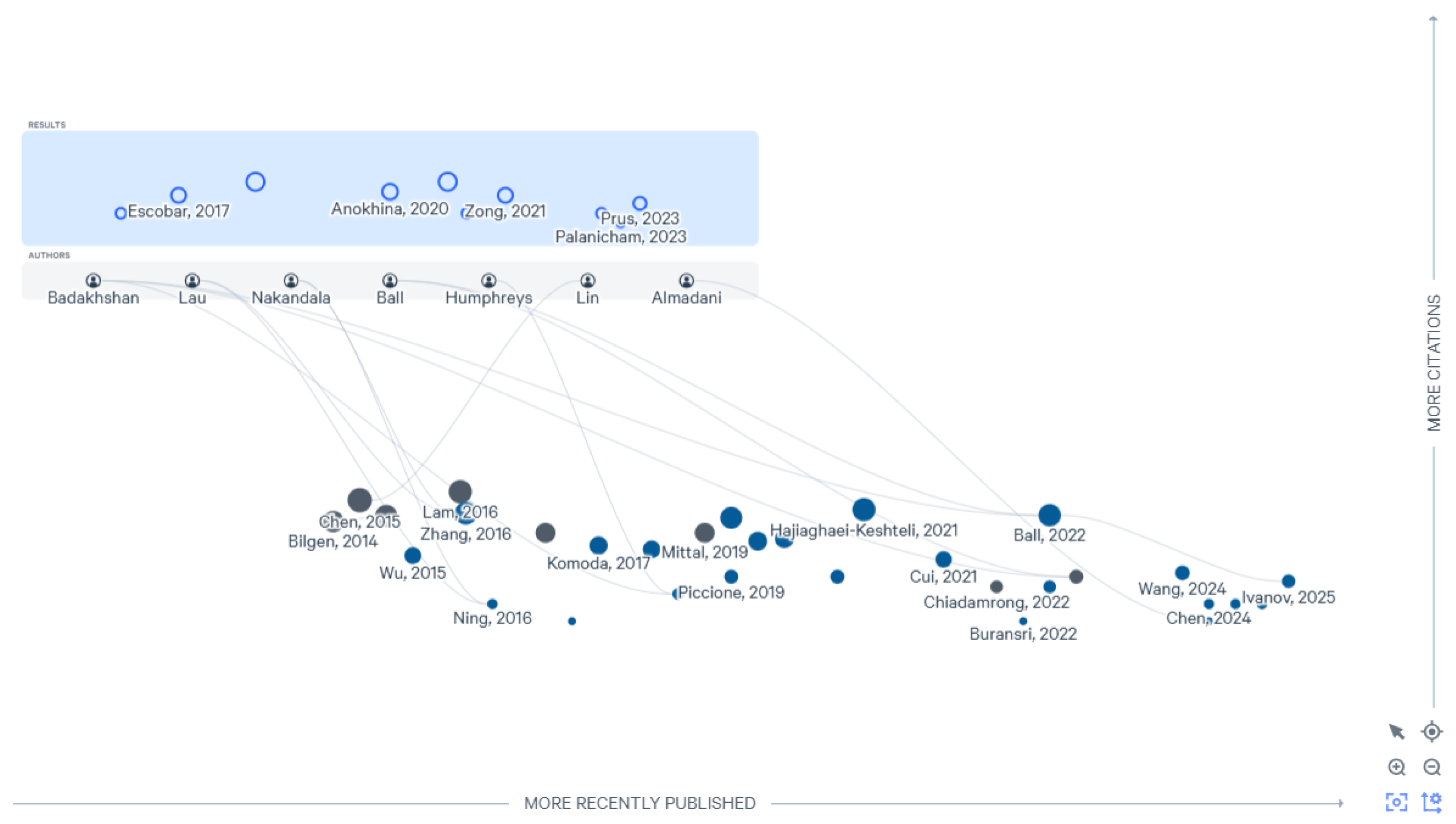 - Key words: “supply chain*” OR “logistics” OR “supply network*” OR “value chain*” (Author Keywords) AND “supply chain*” OR “logistics” OR “supply network*” OR “value chain*” (Author Keywords) AND “financial impact” OR “financial performance” OR “economic performance” OR “cost reduction” OR “cost optimization” OR “revenue generation” OR “profitability” OR “working capital” OR “liquidity” OR “financial risk*” OR “cash flow” OR “return on investment” OR “ROI” (Author Keywords) AND “mathematical model*” OR “optimization” OR “optimisation” OR “algorithm*” OR “simulation” OR “predictive model*” OR “data analytic*” OR “machine learning” OR “deep learning” OR “artificial intelligence” OR “stochastic model*” OR “control theory” OR “game theory” OR “network model*” OR “forecasting model*” OR “statistical model*” OR “computational method*” OR “quantitative method*” (Author Keywords) and 2025 or 2024 or 2023 or 2022 or 2021 or 2020 or 2019 or 2018 or 2017 or 2016 or 2015 (Publication Years).