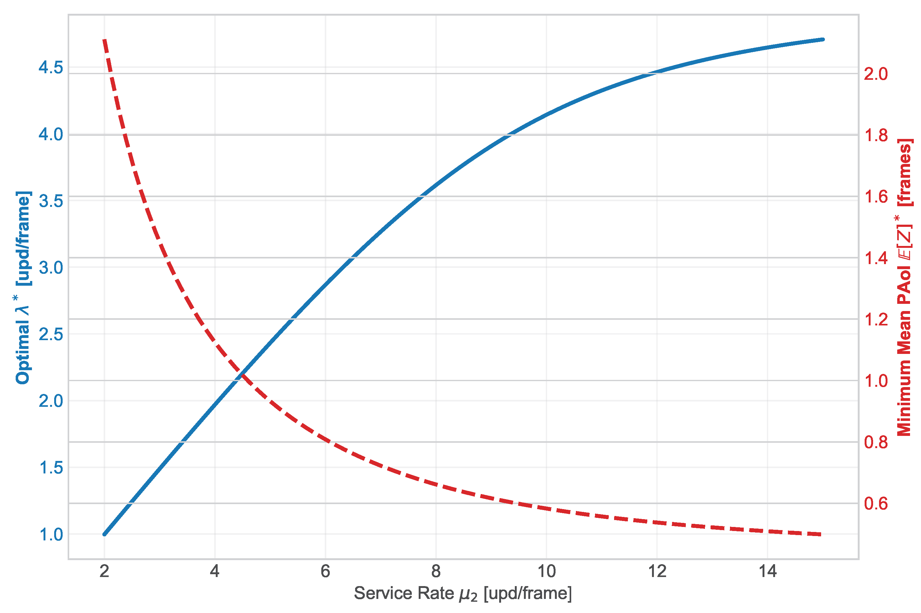 , allowing the system to support higher update frequencies and lower PAoI as the service capacity improves.