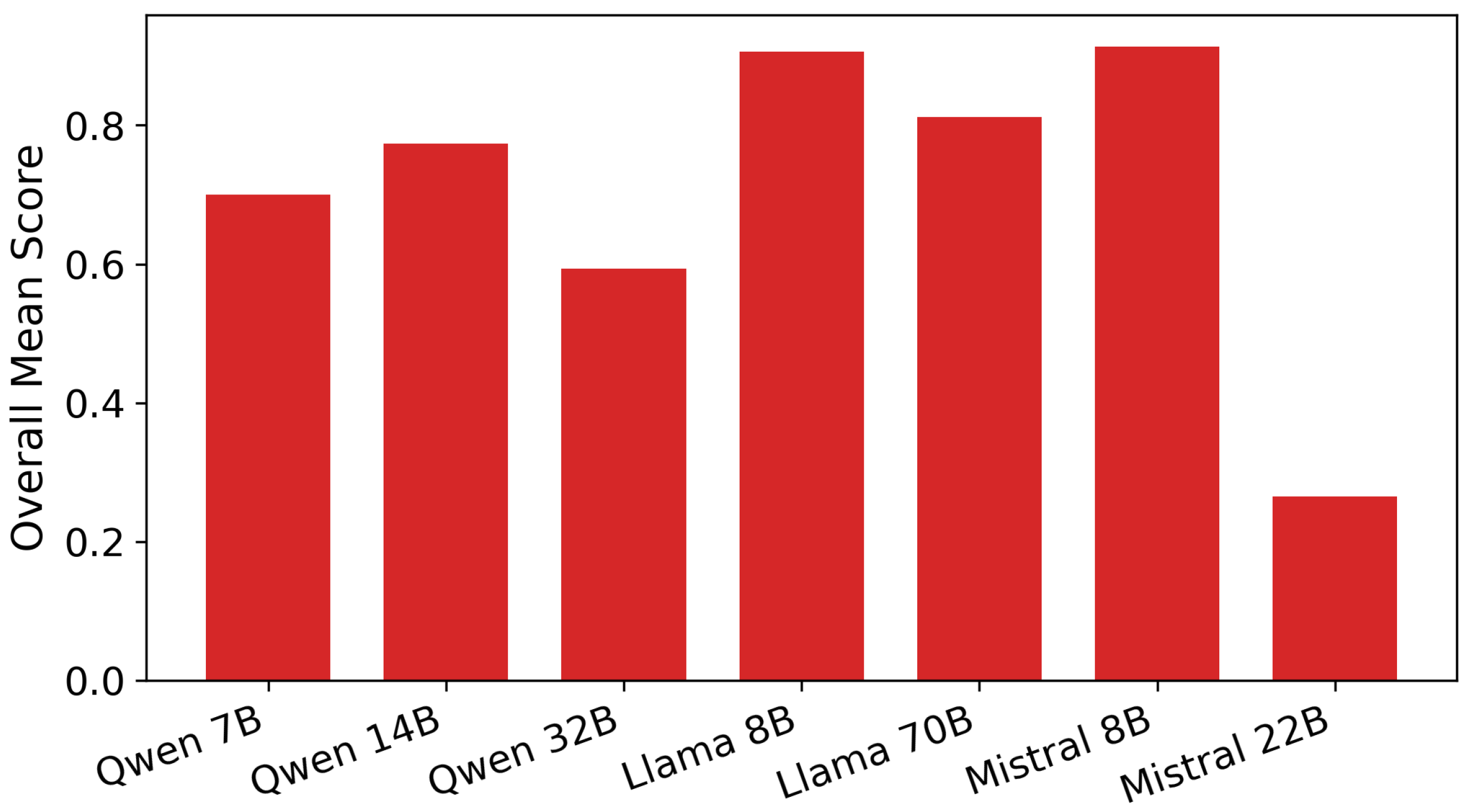 Figure 2 illustrates the relationship between model scale and average ethical detection performance. Contrary to a simple scaling hypothesis, larger models do not consistently outperform smaller or mid-scale models. For example, Qwen-14B achieves higher mean scores than Qwen-32B, indicating that increased parameter count alone does not guarantee improved ethical sensitivity. To improve interpretability, numerical values are explicitly annotated in the figure, enabling direct comparison across model sizes. These results suggest that architectural design choices and training objectives play a more critical role than scale alone.