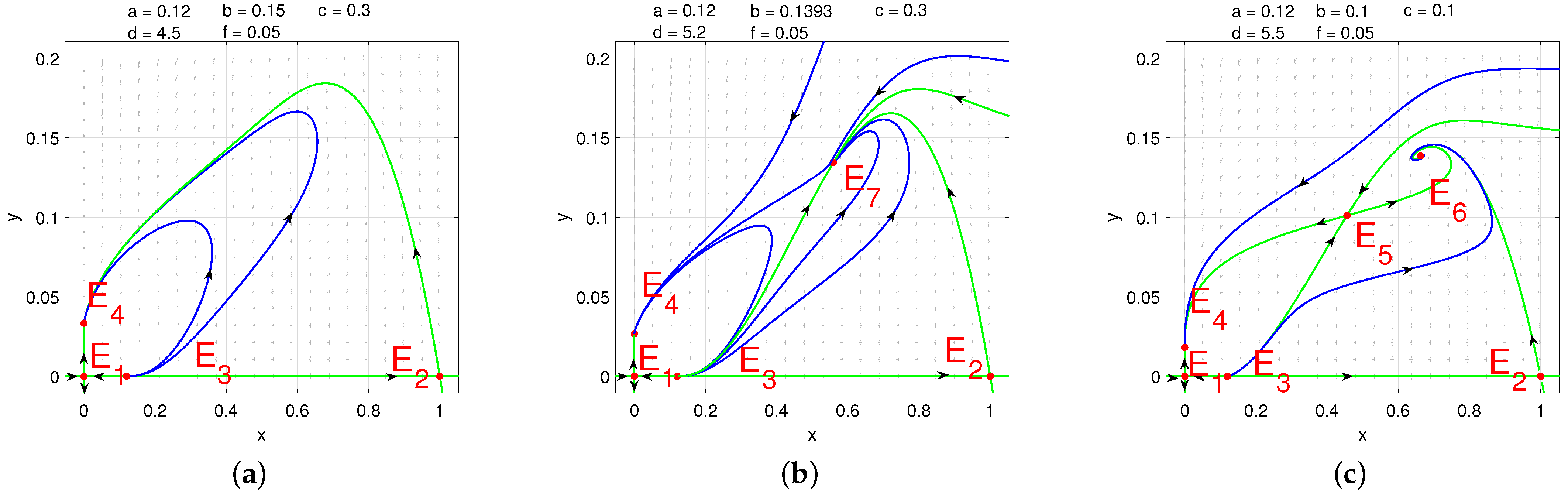 - Huang, K.L.; Jia, X.T.; Li, C.P. Analysis of modified Holling-Tanner model with strong allee effect. Math. Biosci. Eng. 2023, 20, 15524–15543. [Google Scholar] [CrossRef]