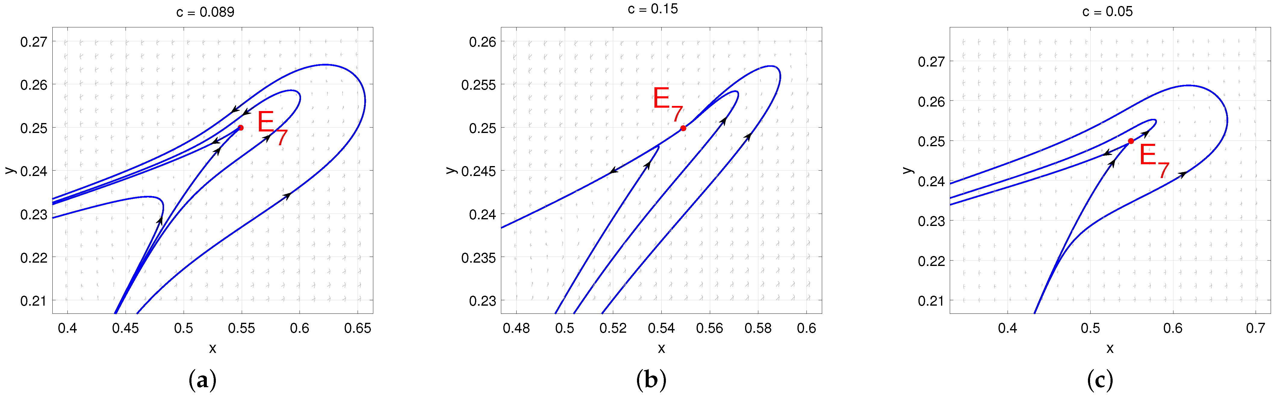 - Vinoth, S.; Vadivel, R.; Hu, N.T.; Chen, C.S.; Gunasekaran, N. Bifurcation Analysis in a Harvested Modified Leslie-Gower Model Incorporated with the Fear Factor and Prey Refuge. Mathematics 2023, 11, 3118. [Google Scholar] [CrossRef]