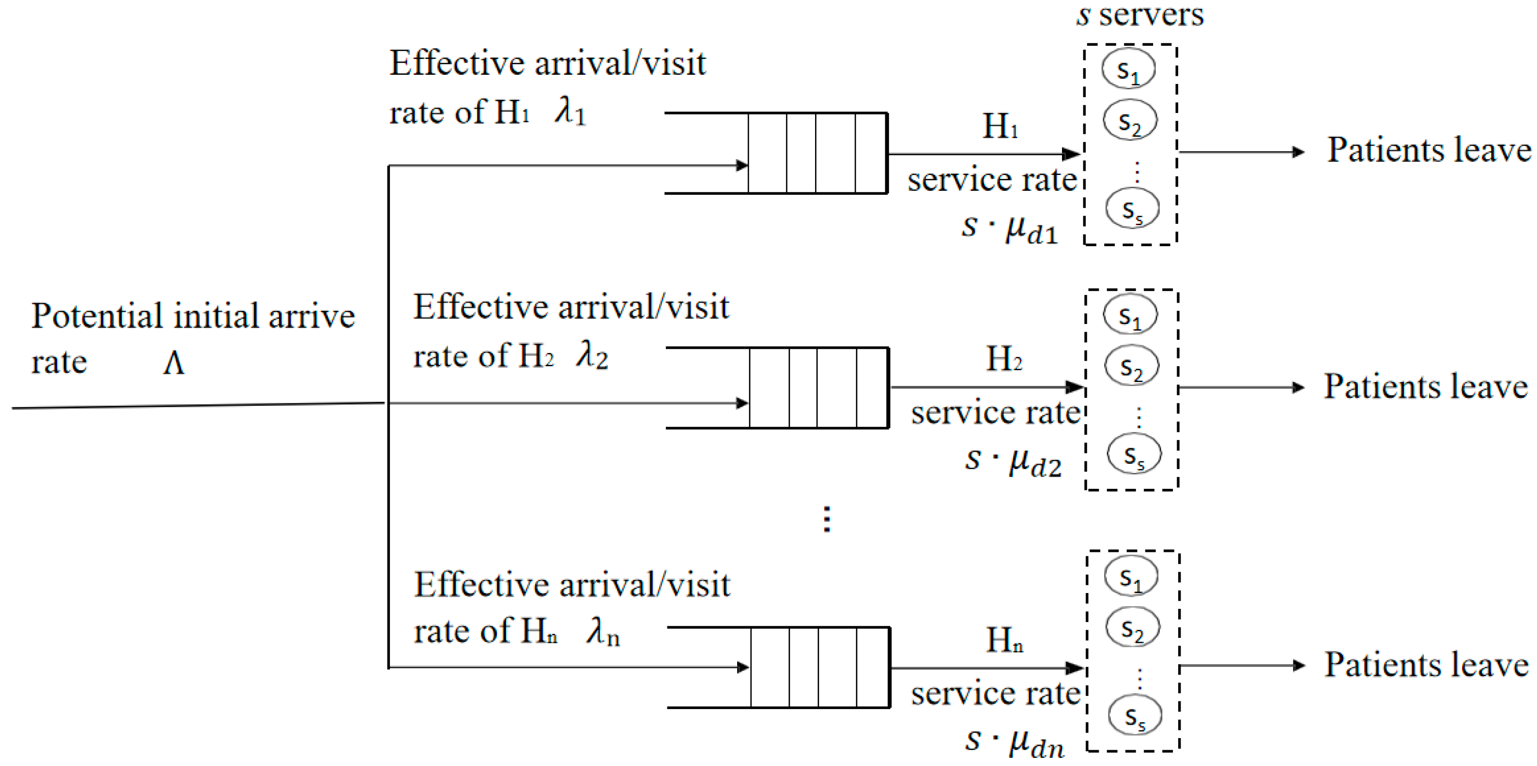 | The initial arrival rate of patients who join hospital | |