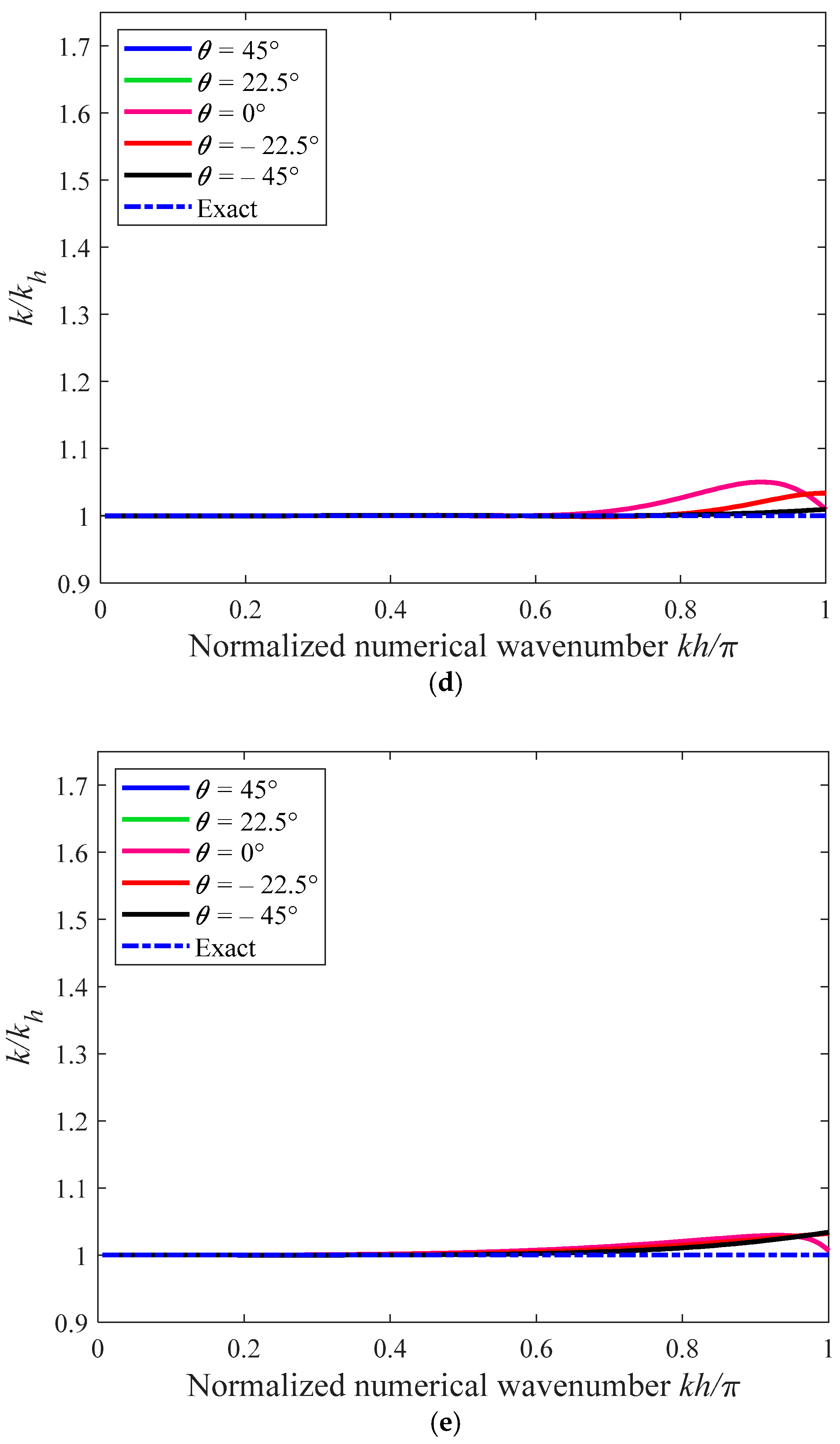 - Deraemaeker, A.; Babuška, I.; Bouillard, P. Dispersion and pollution of the FEM solution for the Helmholtz equation in one, two and three dimensions. Int. J. Numer. Methods Eng. 1999, 46, 471–499. [Google Scholar] [CrossRef]
