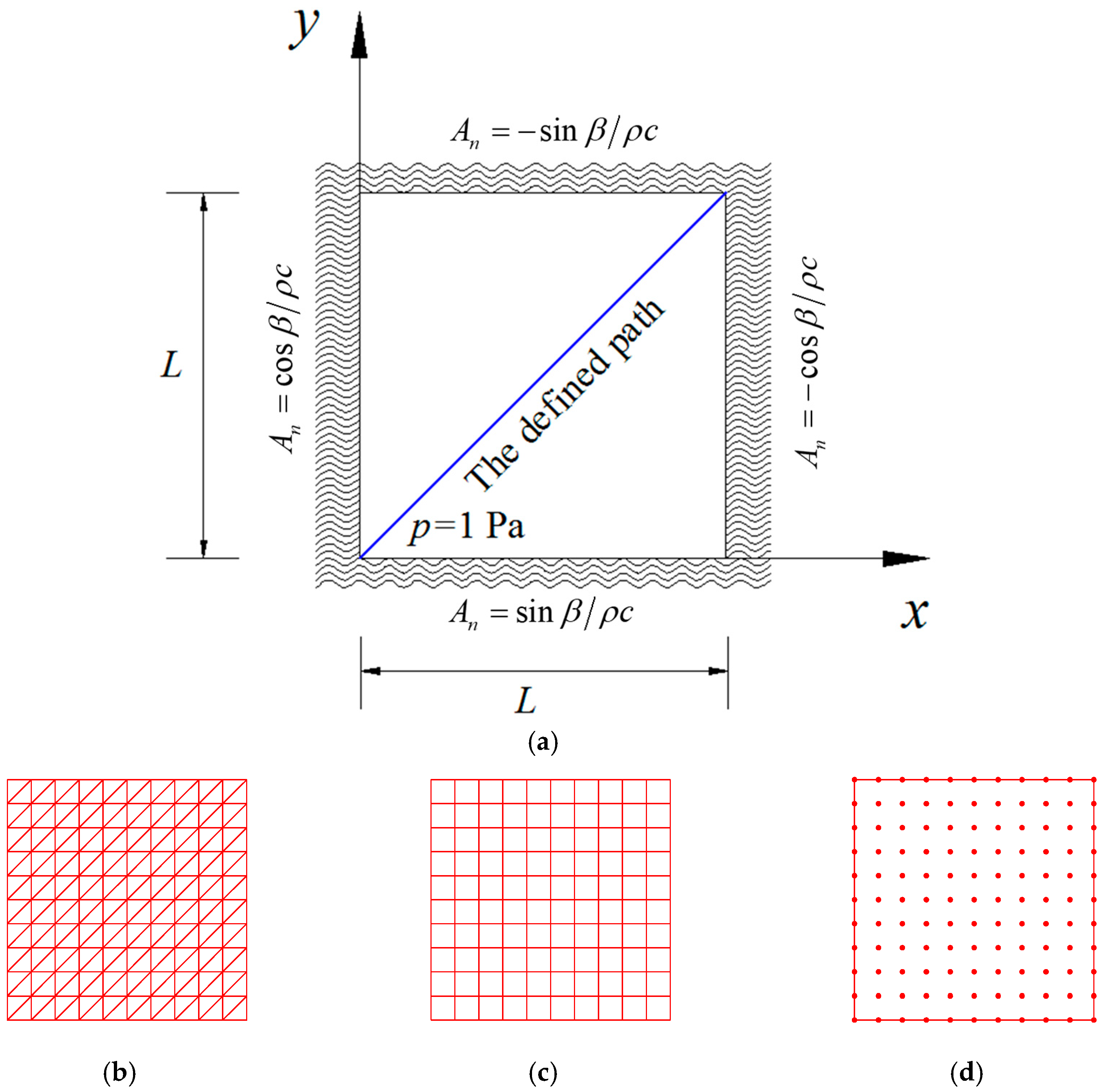 - You, X.Y.; Li, W.; Chai, Y.B. A truly meshfree method for solving acoustic problems using local weak form and radial basis functions. Appl. Math. Comput. 2020, 365, 124694. [Google Scholar] [CrossRef]