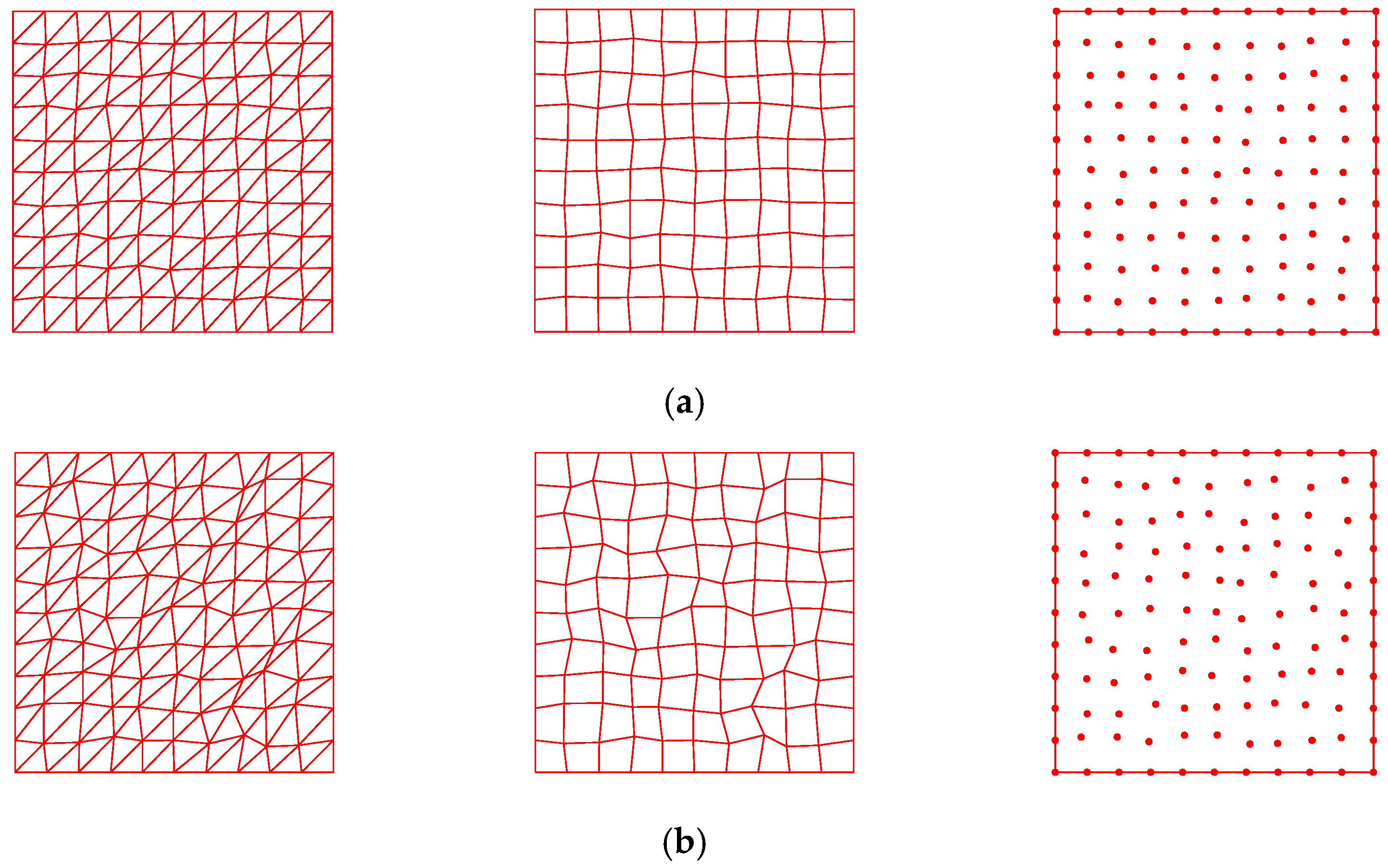 - An, X.M.; Li, L.X.; Ma, G.W.; Zhang, H.H. Prediction of rank deficiency in partition of unity-based methods with plane triangular or quadrilateral meshes. Comput. Methods Appl. Mech. Eng. 2011, 200, 665–674. [Google Scholar] [CrossRef]