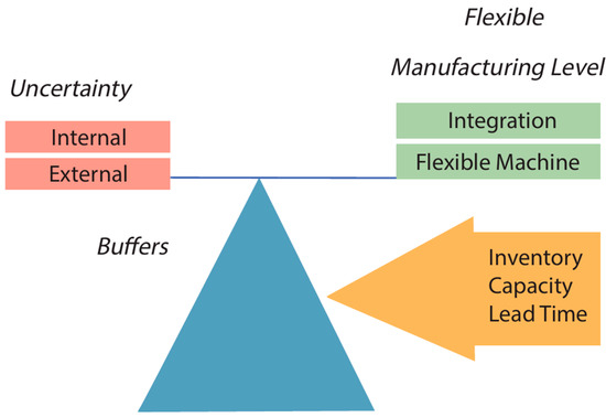 - Newman, W.R.; Hanna, M.; Maffei, M.J. Dealing with the Uncertainties of Manufacturing: Flexibility, Buffers and Integration. Int. J. Oper. Prod. Manag. 1993, 13, 19–34. [Google Scholar] [CrossRef]
