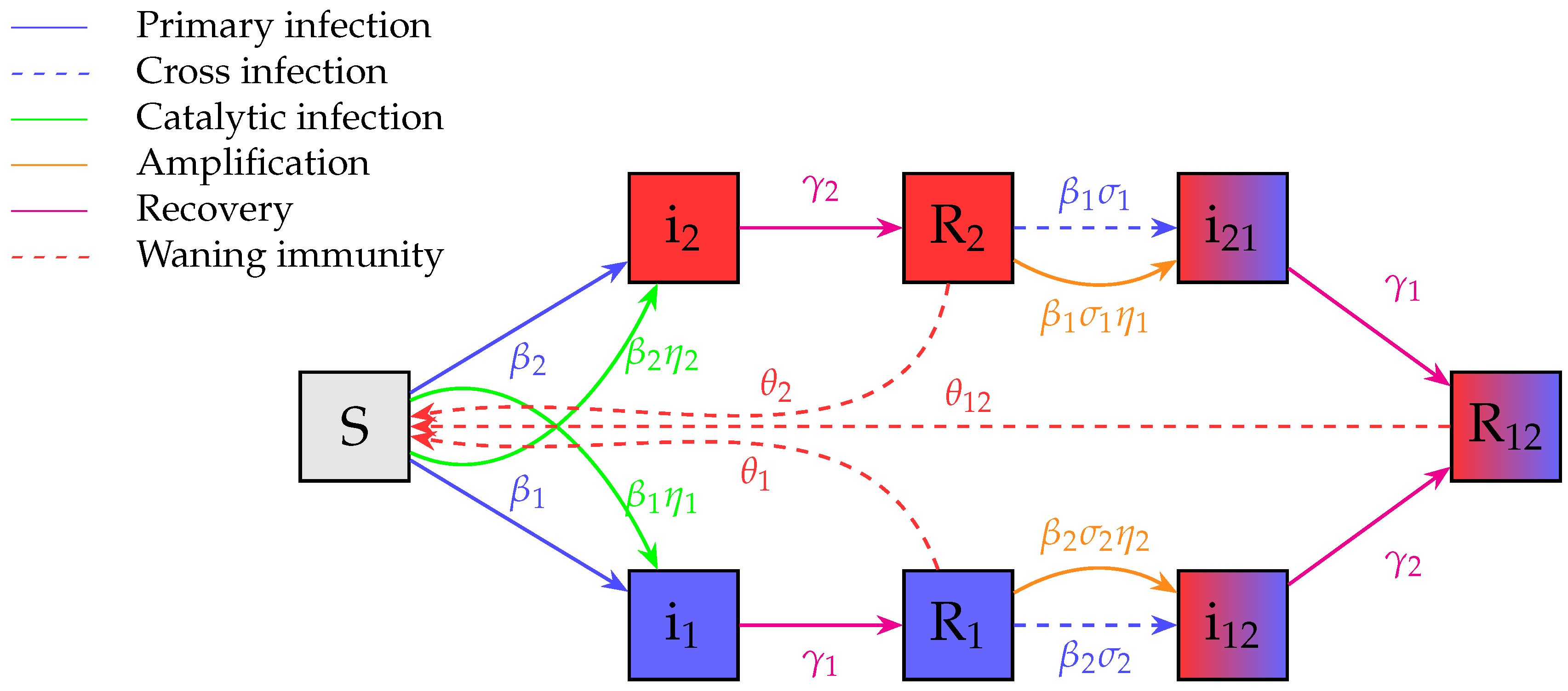 77] to settings where multiple pathogens coexist or compete. The integration of reaction network formalism into epidemiology also brings algorithmic advantages, illustrated in the accompanying software package via symbolic and numerical tools.