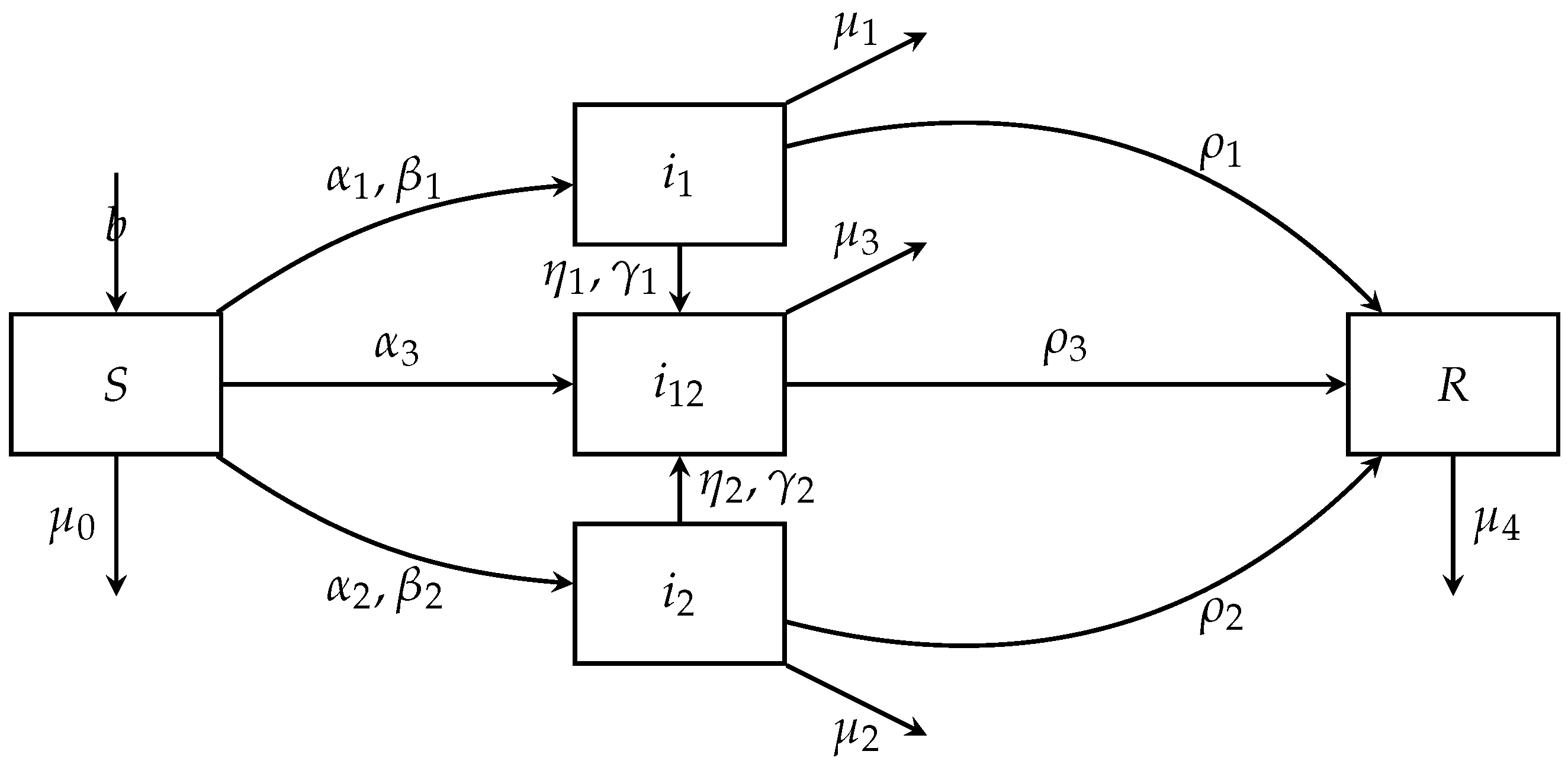 37] for the stability analysis of multi-strain ME models (these are basically the reproduction numbers, in which the resident variables