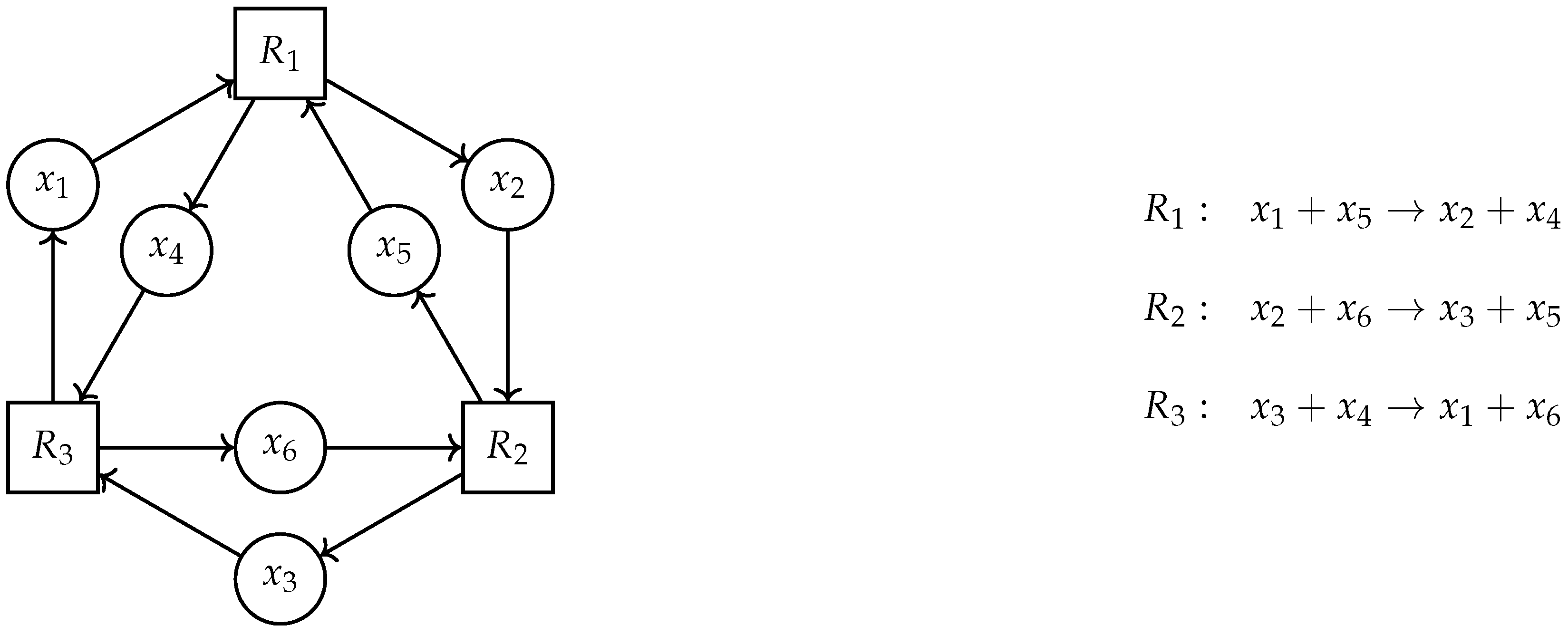 6]. Also, let us mention that CRNT is unavoidable in the study of ODEs with many variables (tens, hundreds). Note, however, that a considerable part of CRNT focuses on systems which enjoy various degrees of “reversibility”, which is absent in ME.
