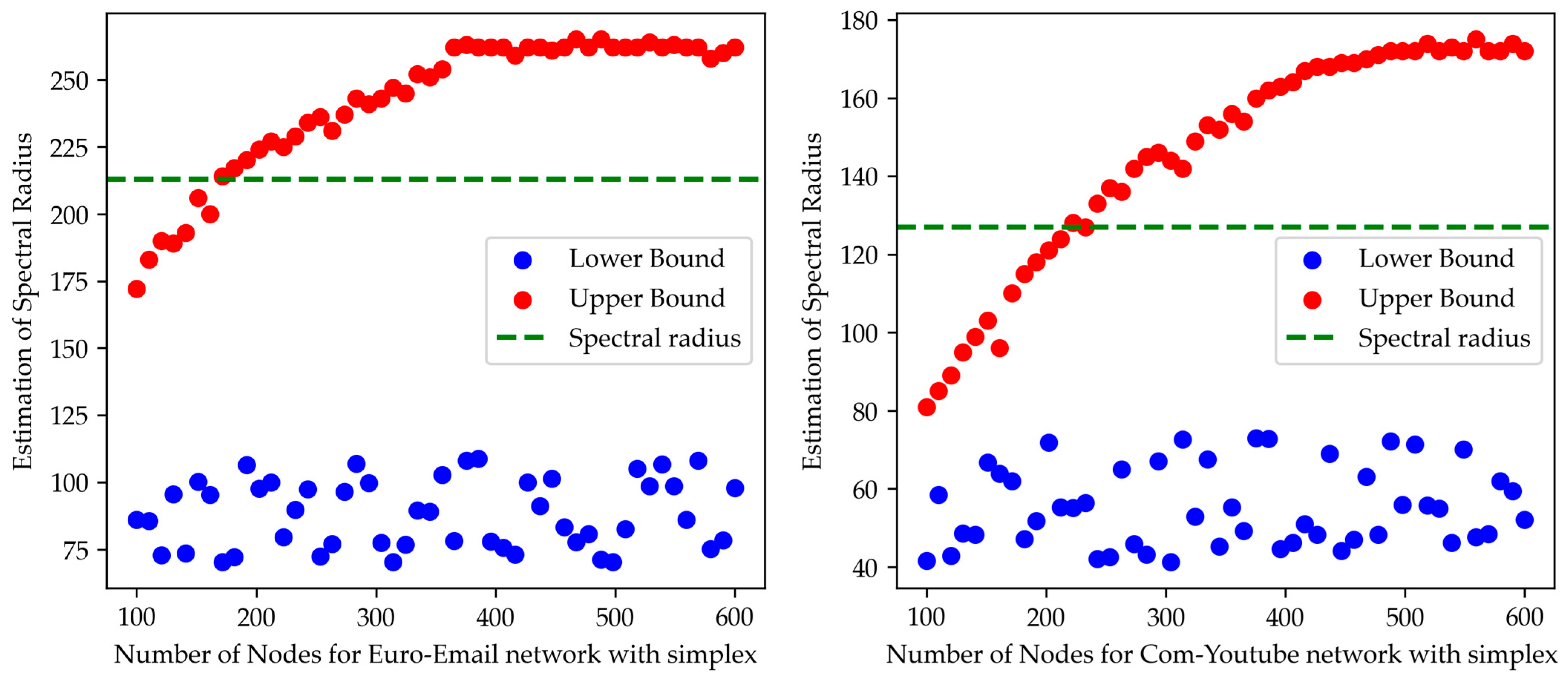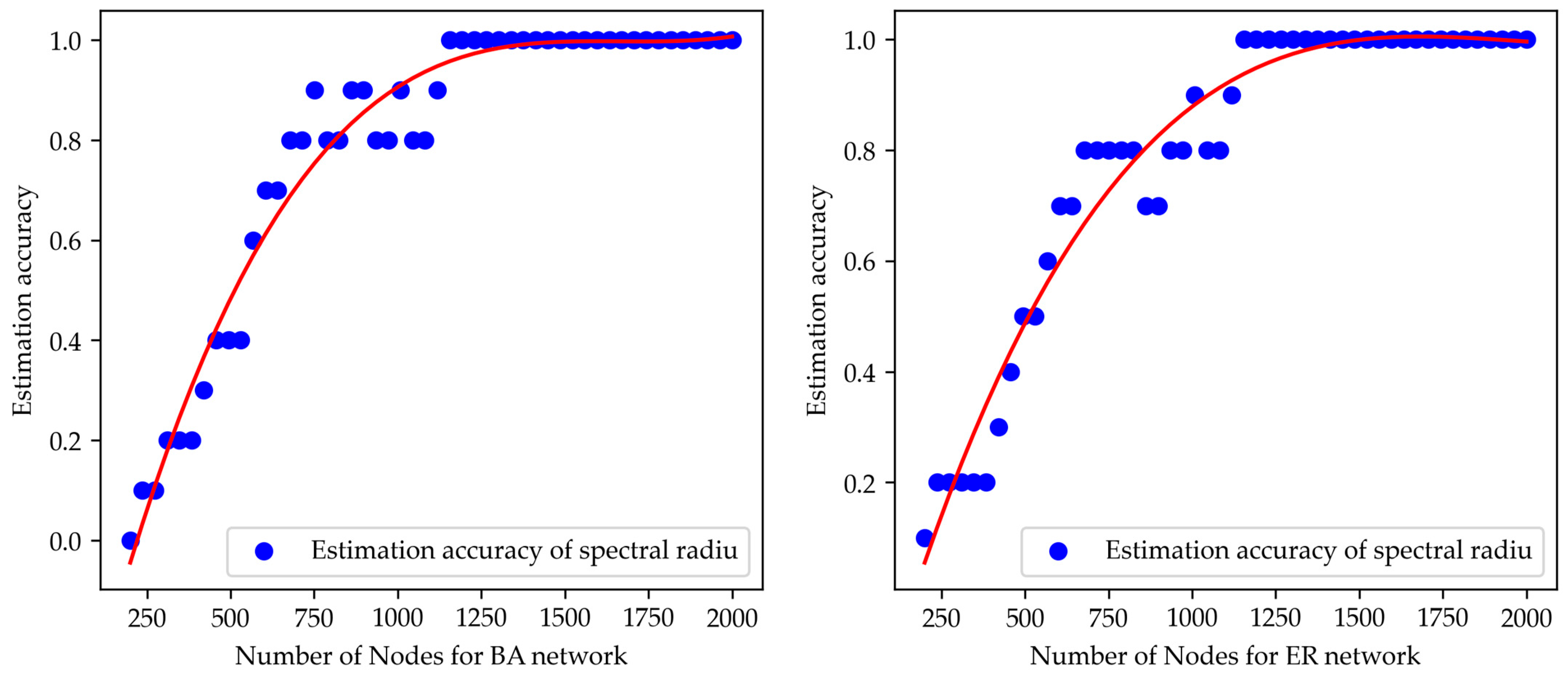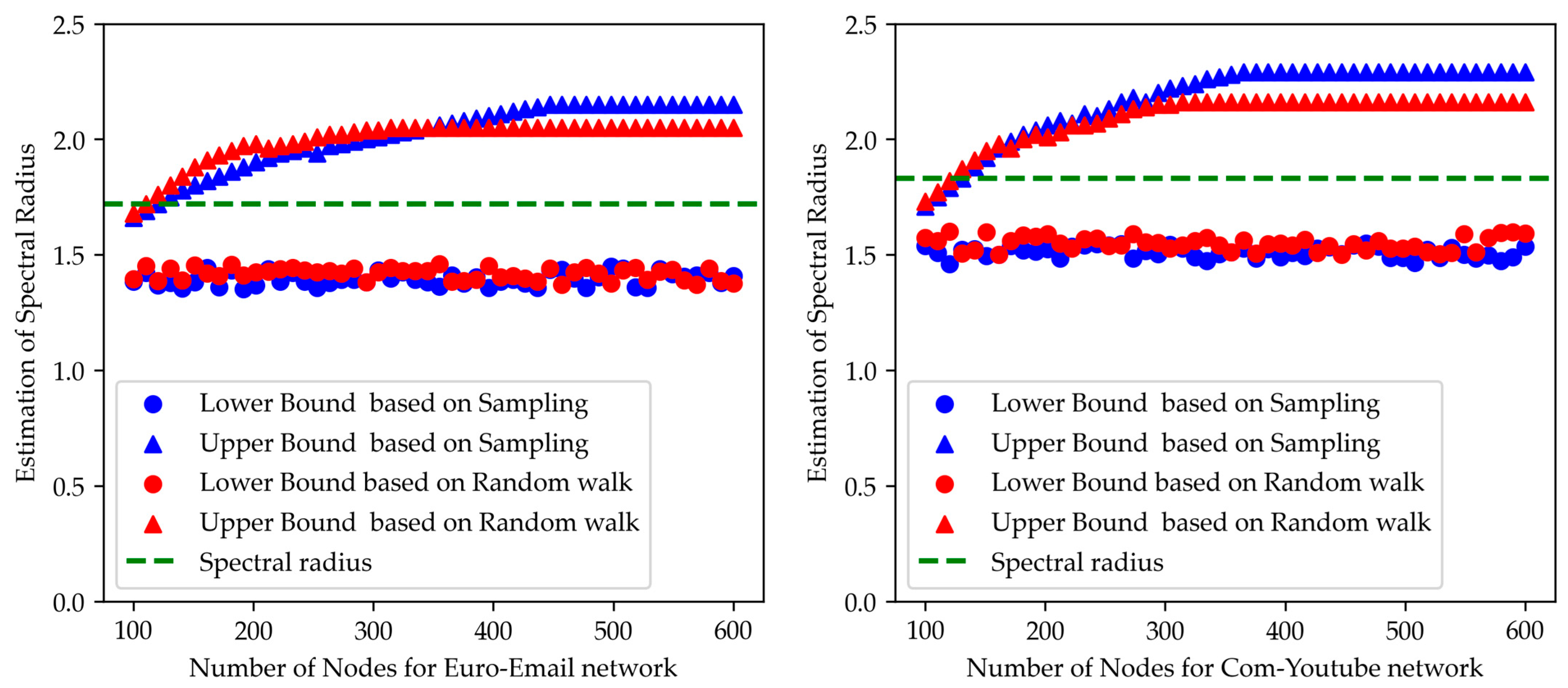 - Chu, X.; Sethu, H. On estimating the spectral radius of large graphs through subgraph sampling. In Proceedings of the 2015 IEEE Conference on Computer Communications Workshops (INFOCOM WKSHPS), Hong Kong, China, 26 April–1 May 2015; IEEE: Piscataway, NJ, USA, 2015; pp. 432–437. [Google Scholar]