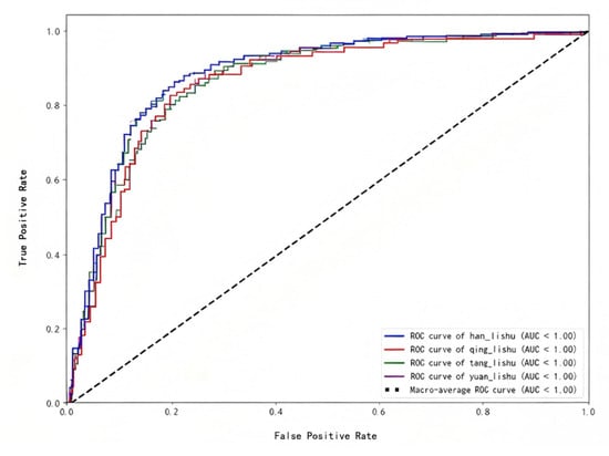 Figure 8 shows the multi-class ROC curves of the proposed calligraphy dynasty classification model on the test set. Key observations from the figure are as follows: