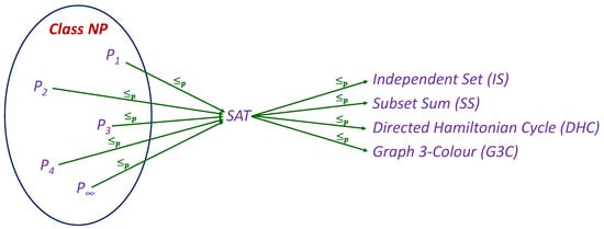 - Cook, S.A. The Complexity of Theorem-Proving Procedures. In Proceedings of the Third Annual ACM Symposium on Theory of Computing (STOC ’71), Shaker Heights, OH, USA, 3–5 May 1971; ACM: New York, NY, USA, 1971; pp. 151–158. [Google Scholar]