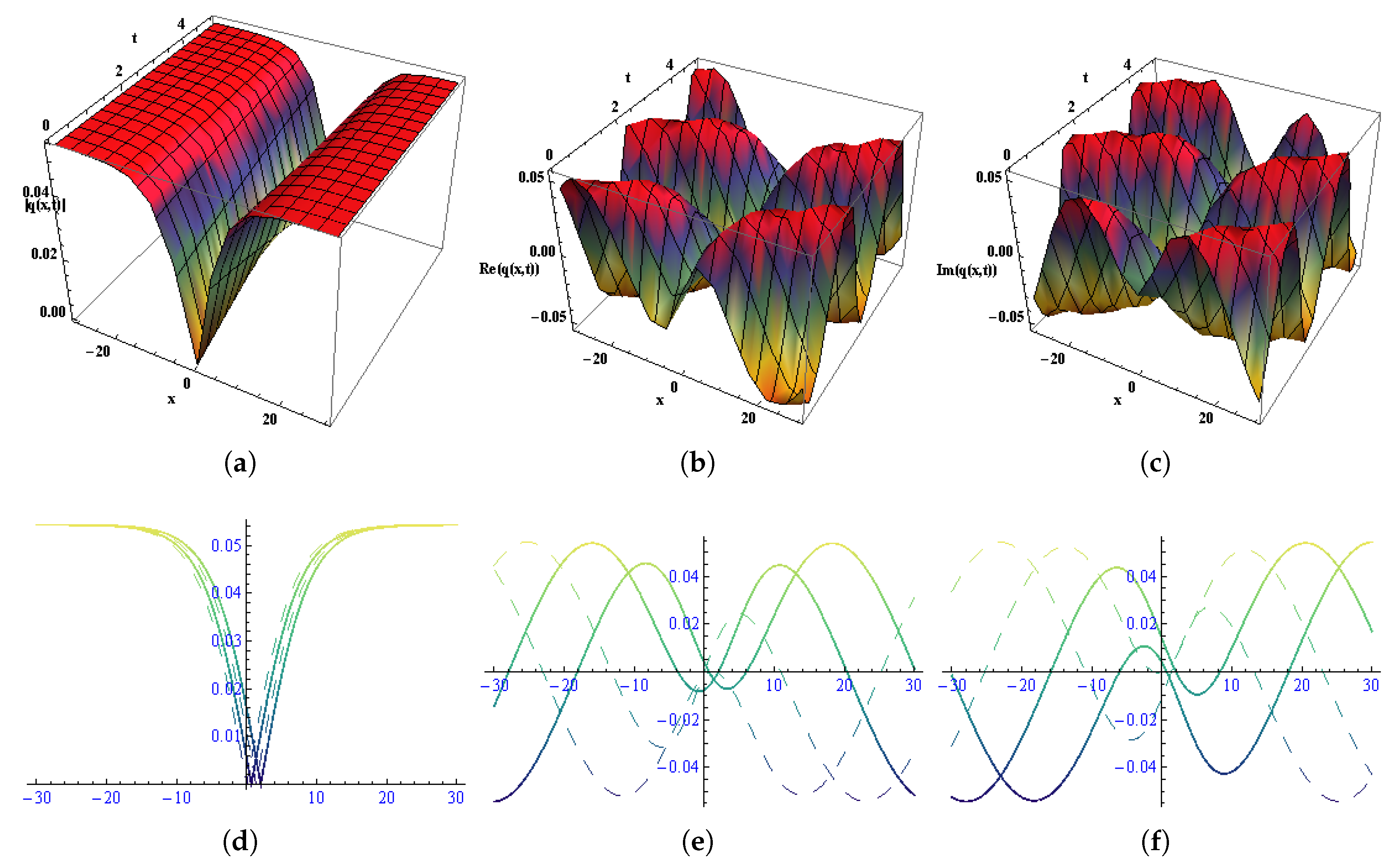 - Zhu, S.D. Exact solutions for the high-order dispersive cubic-quintic nonlinear Schrödinger equation by the extended hyperbolic auxiliary equation method. Chaos Solitons Fractals 2007, 34, 1608–1612. [Google Scholar] [CrossRef]