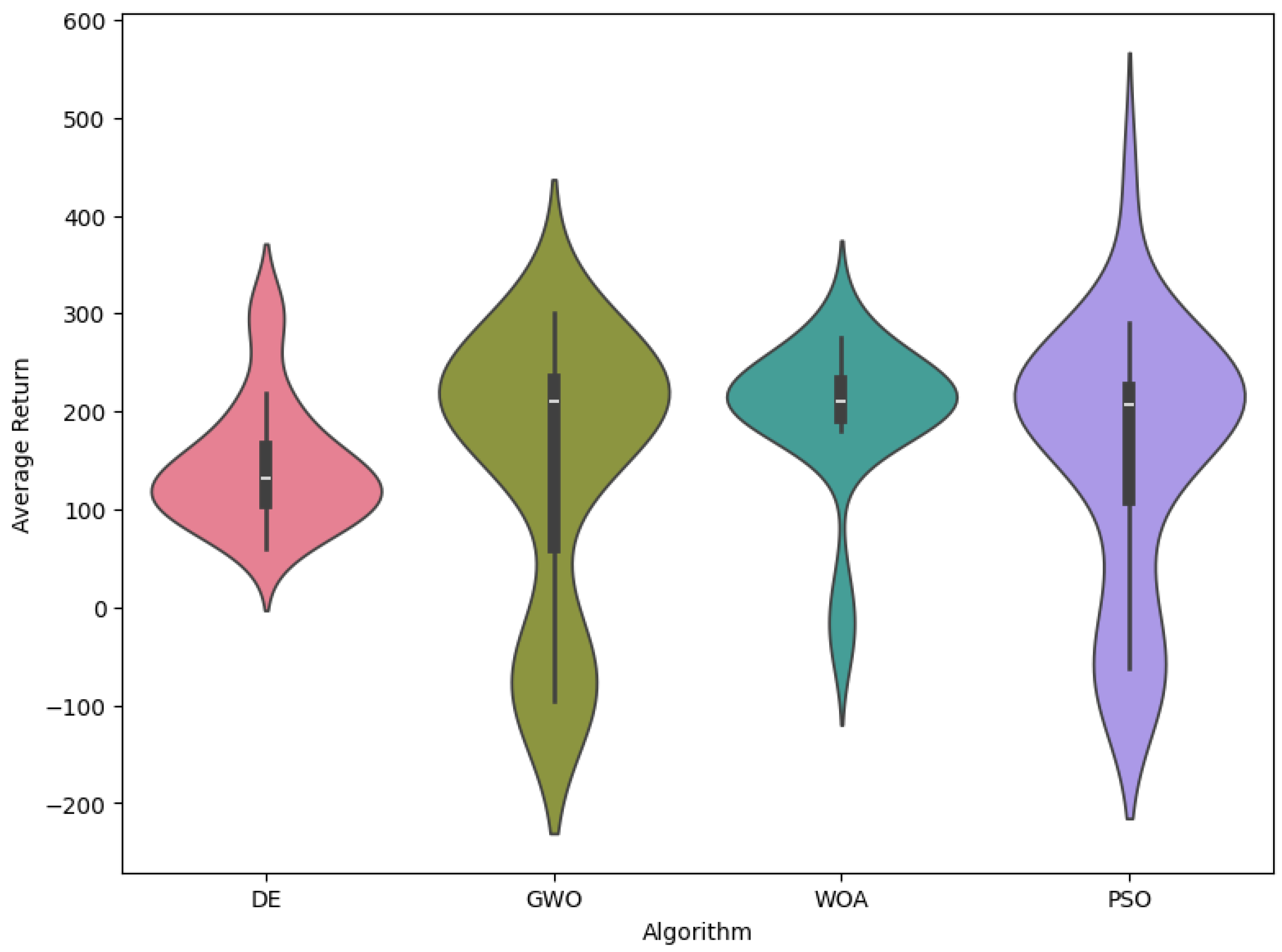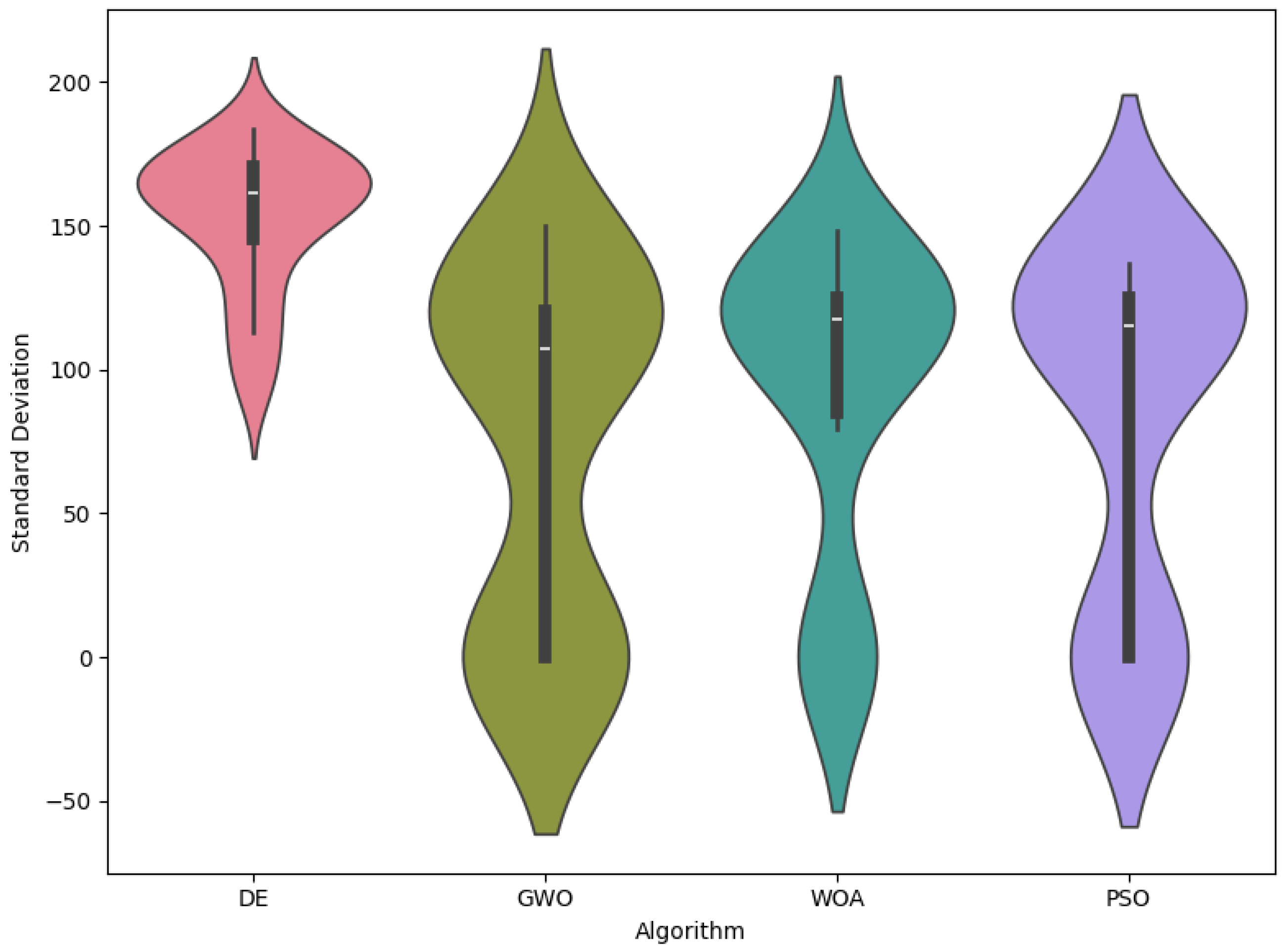 | Metric | WOA | GWO | PSO | DE |