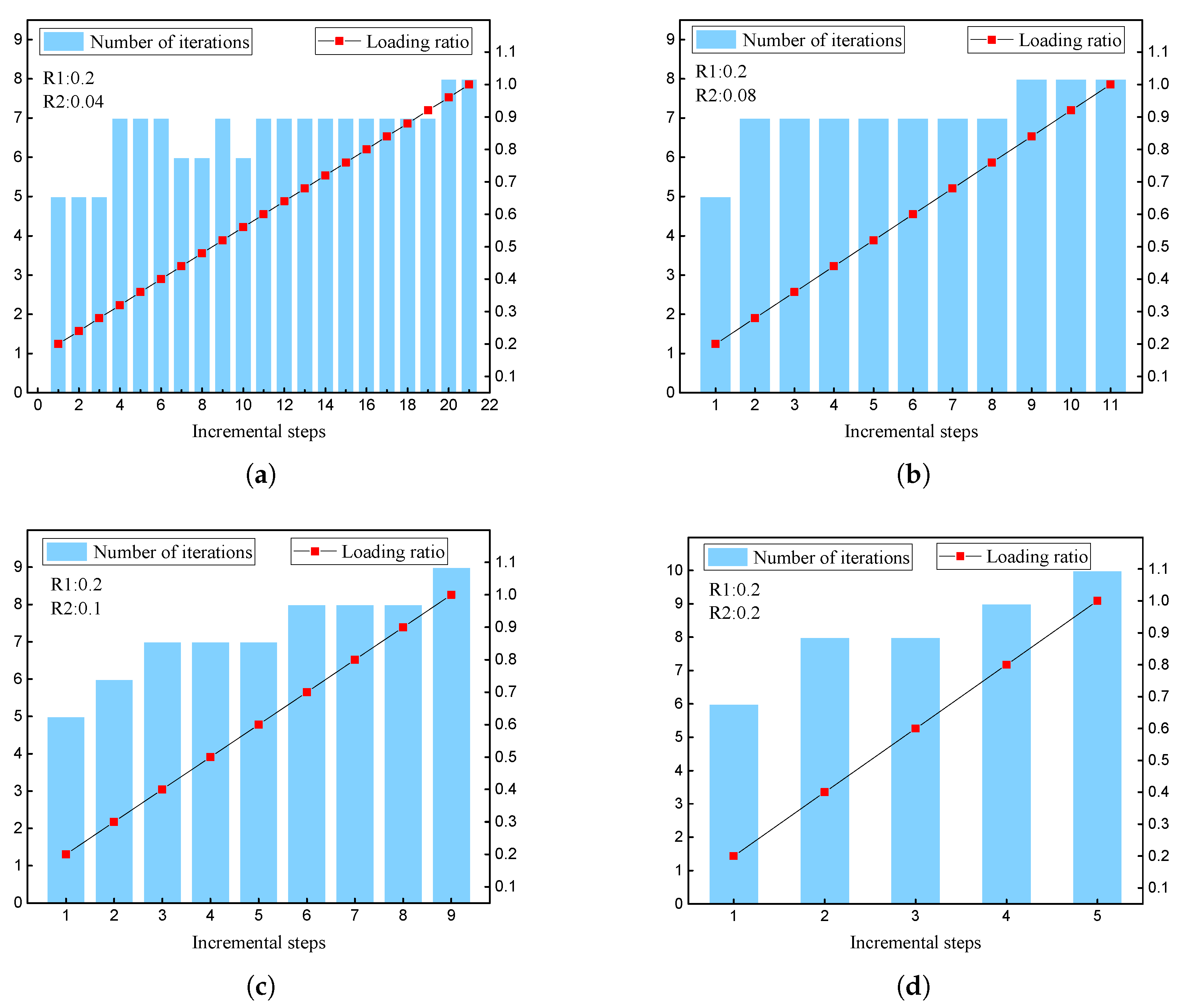 In this paper, the path independent strategy is used to update the strain increment Δ ε , which is updated based on the convergent value of the previous increment step. The path independent strategy can describe the strain path more reasonably and avoid the pseudo-unloading phenomenon [35].