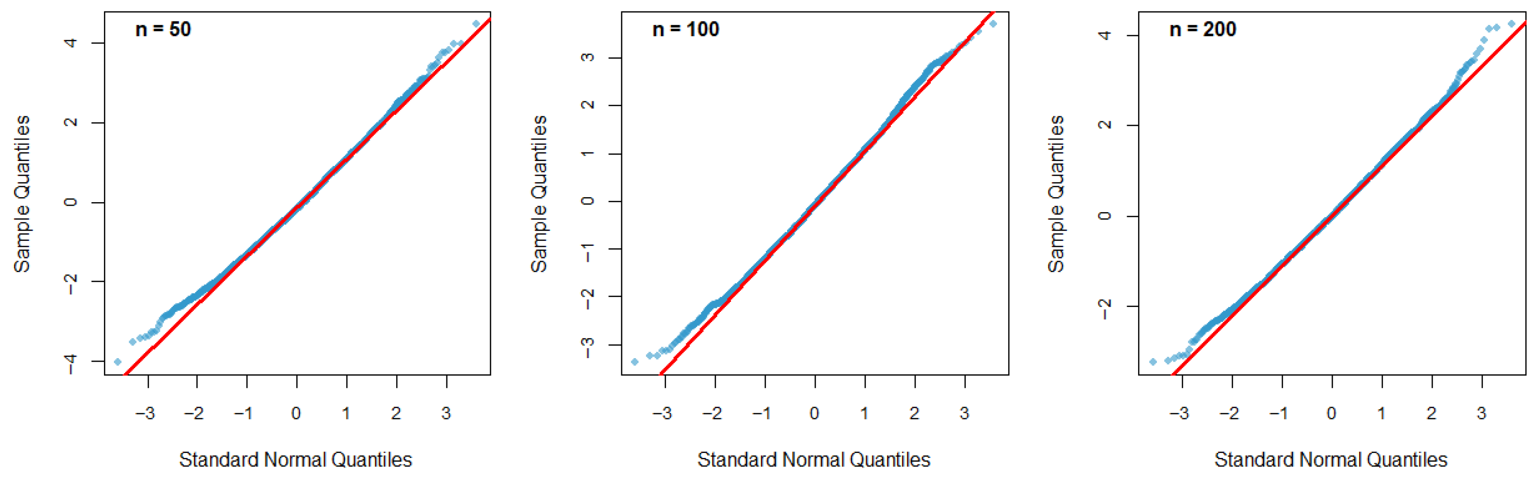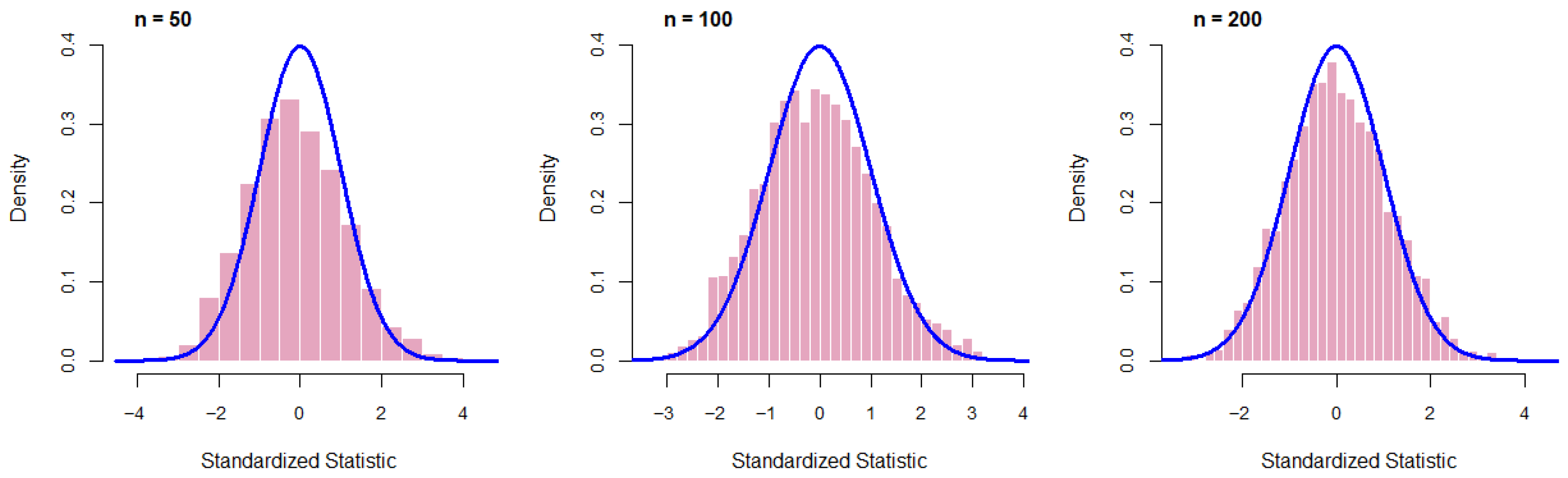 - The error sequence is an -mixing process, generated by the recursive formula , where is an independent and identically distributed (i.i.d.) Gaussian innovation term with ; the bandwidth is set to , which satisfies the constraint ; the block parameters are set as follows: the large block length and the small block length , which satisfy the constraints in Corollary 1;