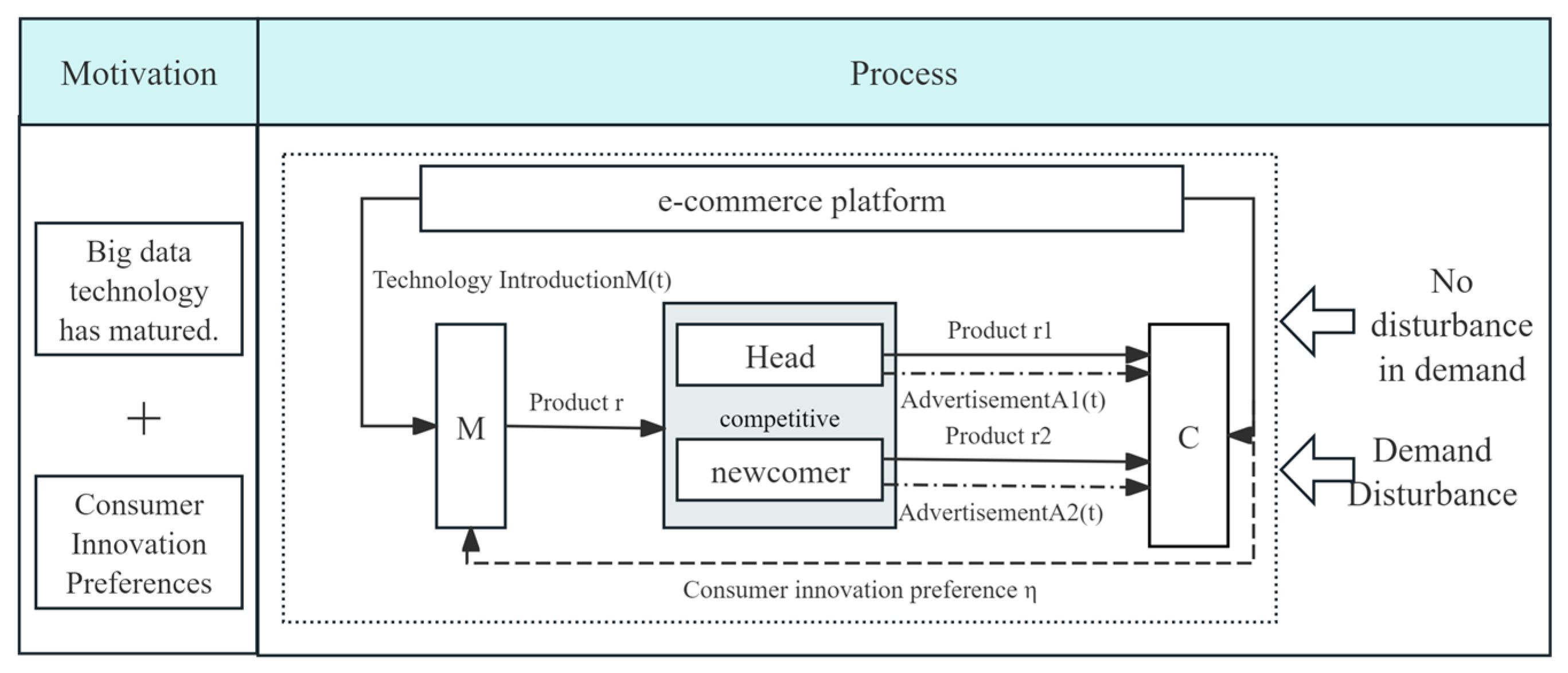 3], most studies have failed to systematically examine competitive dynamics in asymmetric two-tier supply chains composed of head and newcomer brands. Traditional models often assume retailers are symmetric or fail to explicitly differentiate their scale and market power, limiting their explanatory power for the competitive landscape where “big fish” and “small fish” coexist in real markets. Second, existing studies applying differential games often overlook the impact of external demand shocks on this asymmetric competitive structure, failing to reveal how advertising strategies of retailers of different sizes affect their own and the overall supply chain’s robustness under uncertainty.