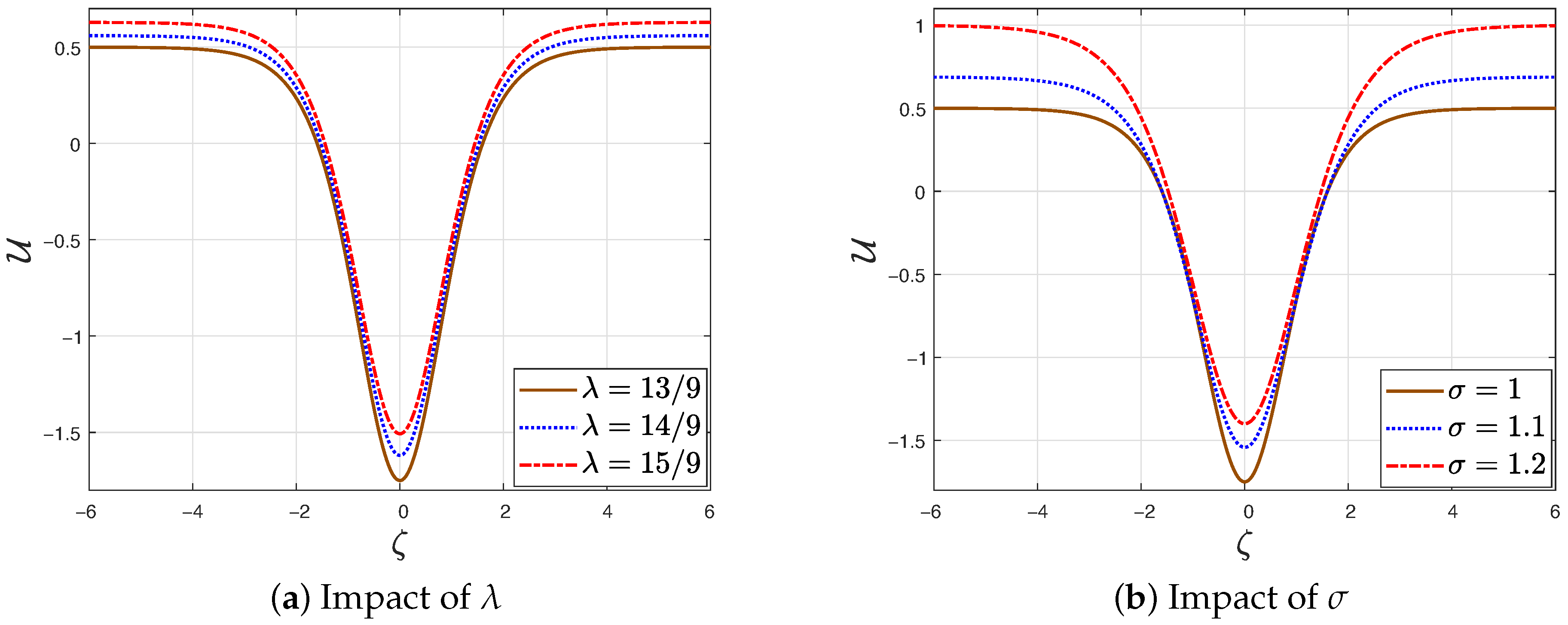 Figure 17a shows that the solitary wave is not significantly affected by changes in the gravitation parameter