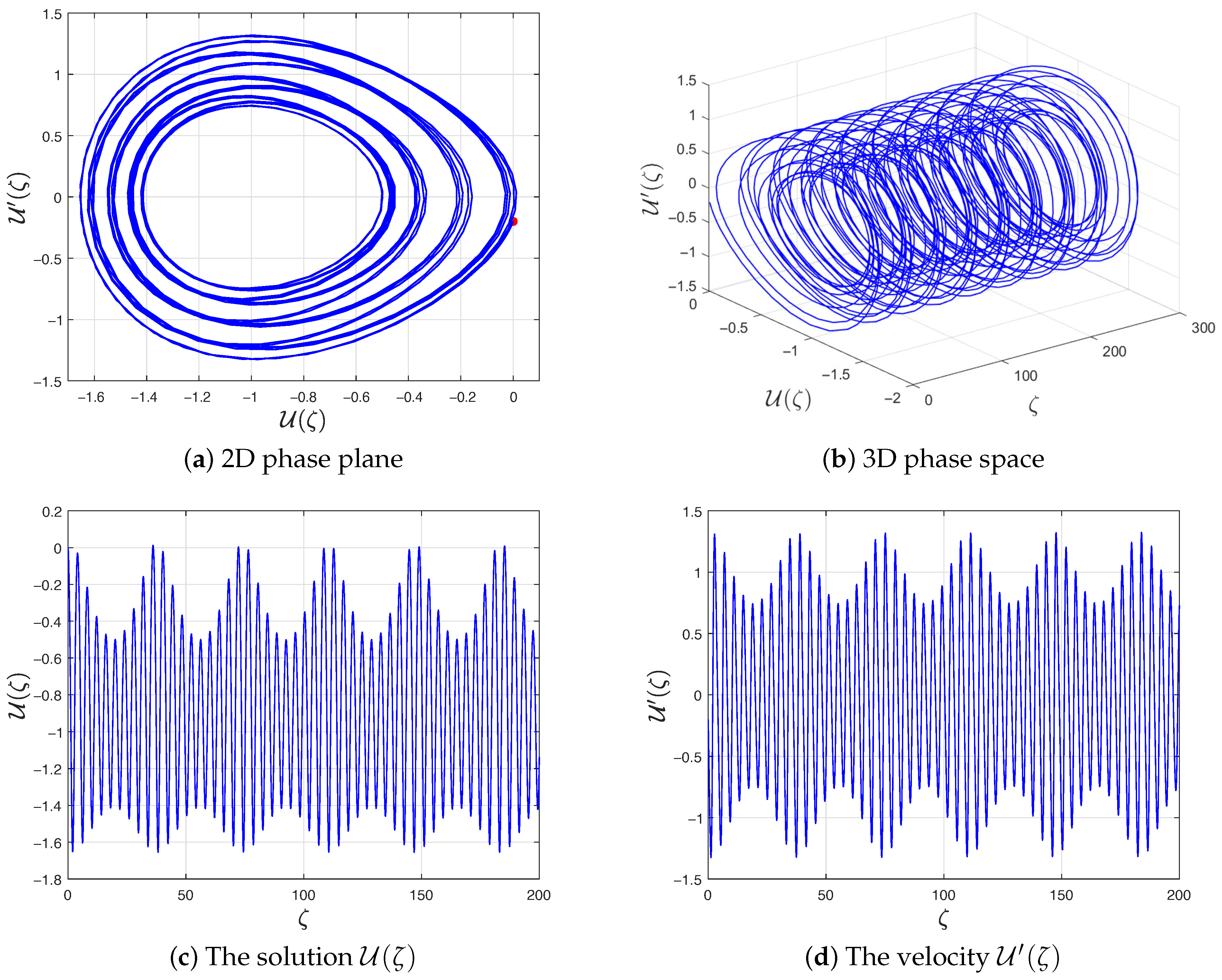 Figure 18a,b show the 2D phase plane and 3D phase space representations, while