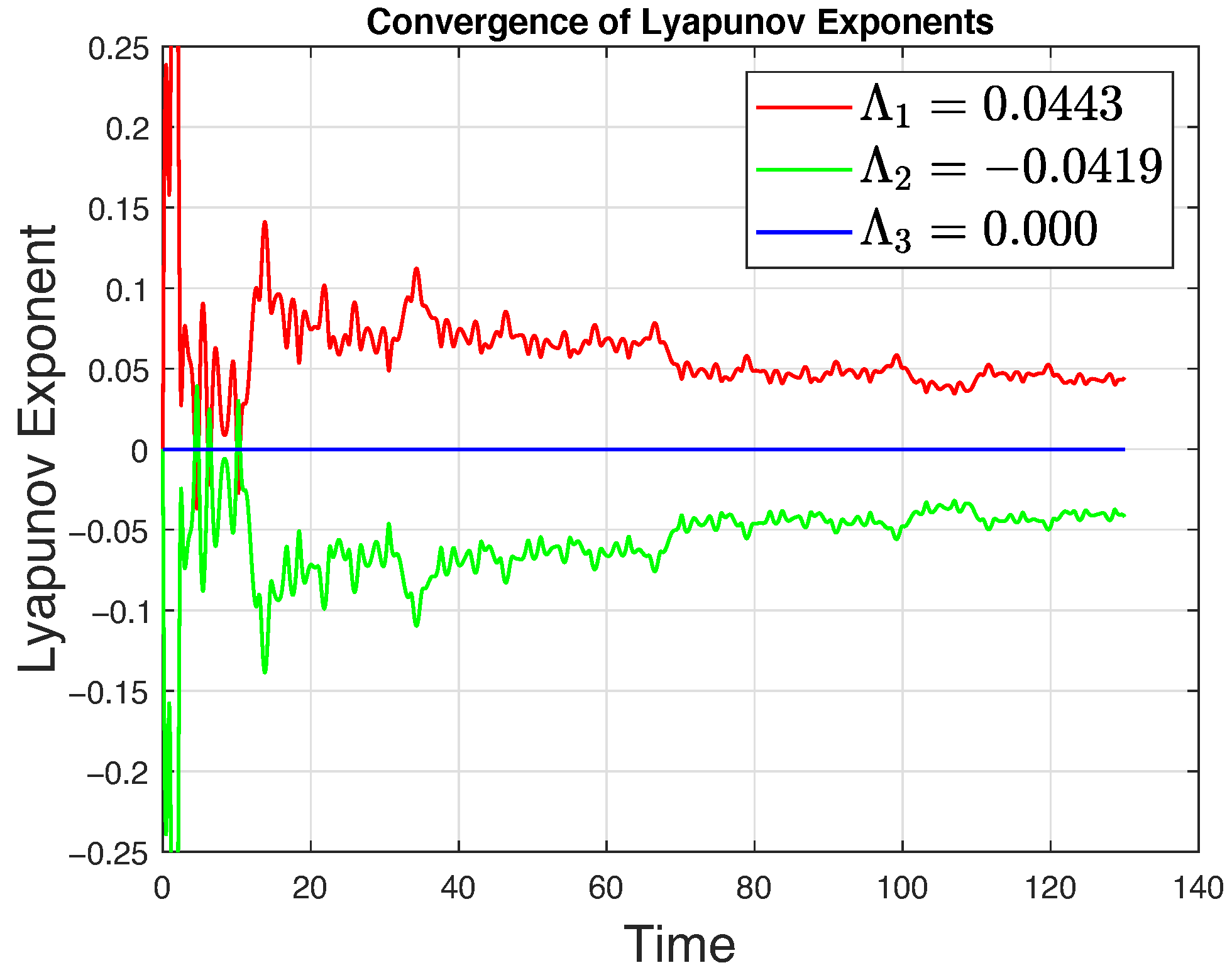 We now evaluate the Lyapunov exponents of Equation (