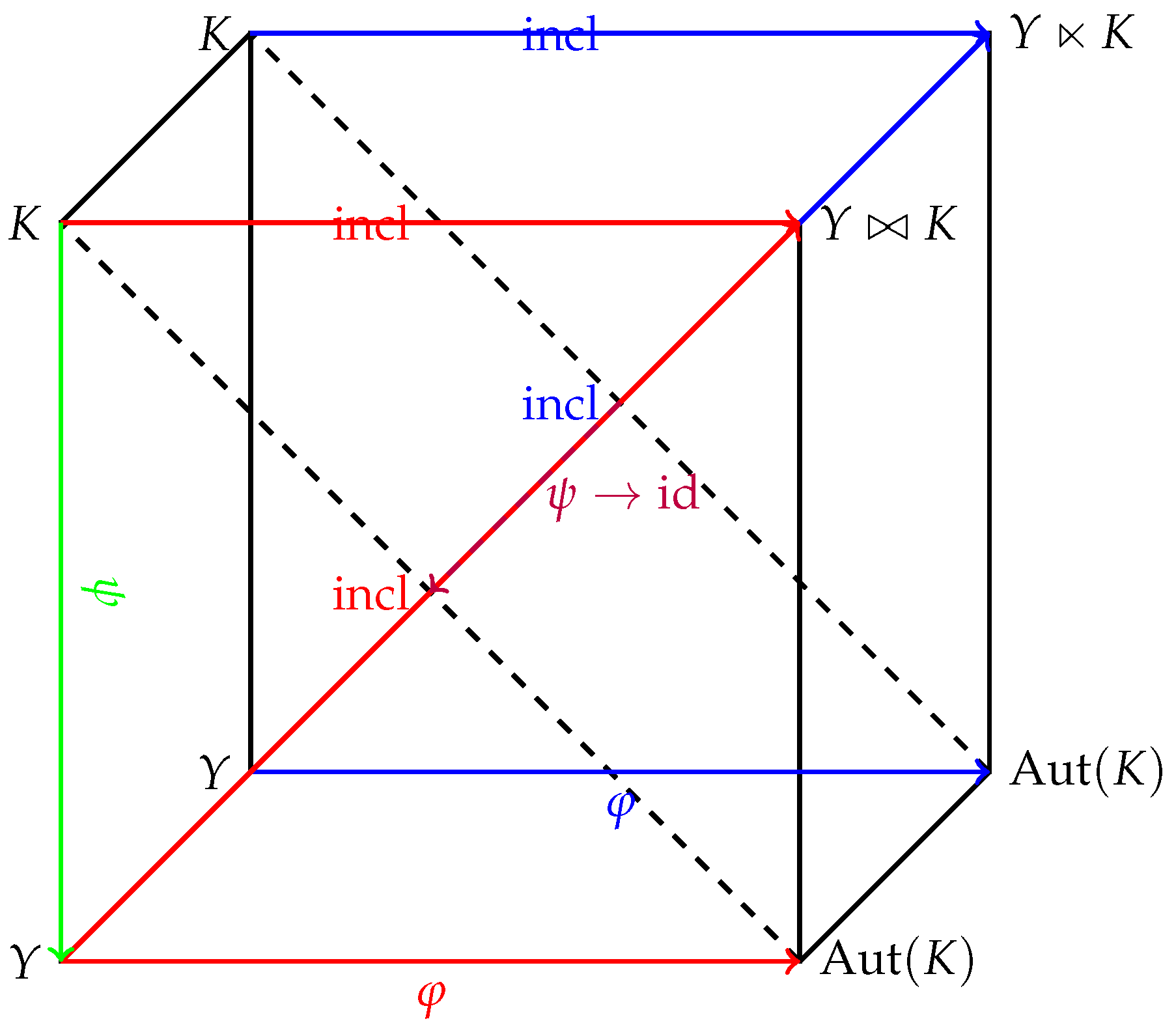- The face corresponding to trivial ψ is precisely the semidirect face, and the collapse induced by is a retraction.