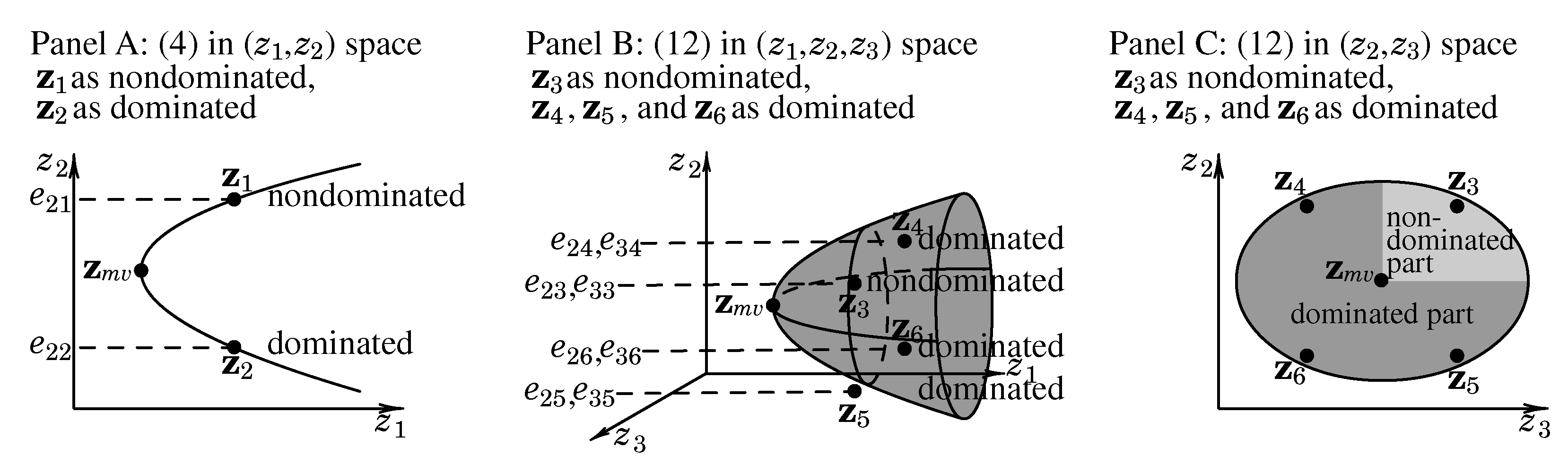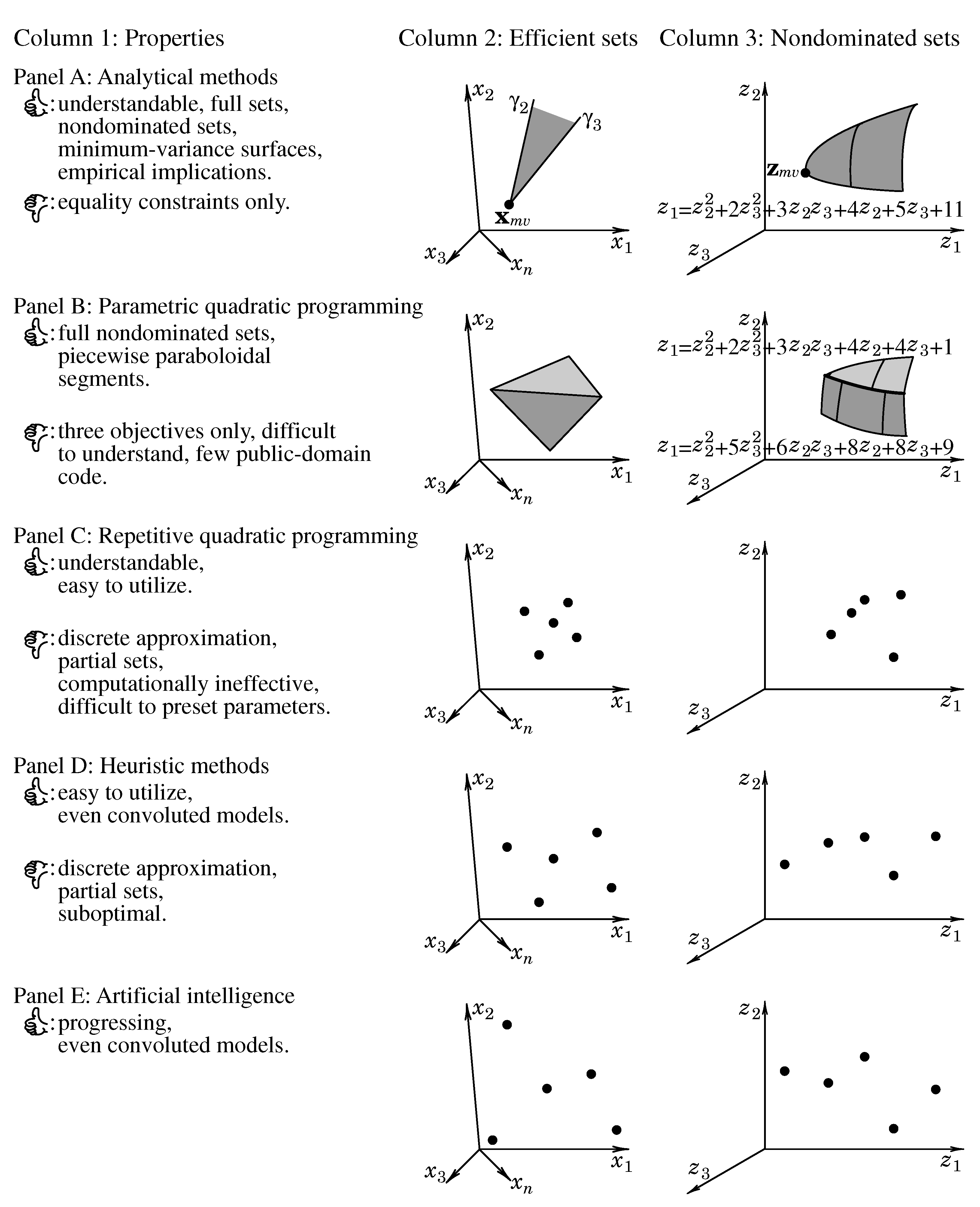 - The scholars assume the group of the optimal solutions as the efficient set of (4) or 3-objective portfolio selection. The scholars also assume the group of the optimal solutions’ criterion vectors as the nondominated set.