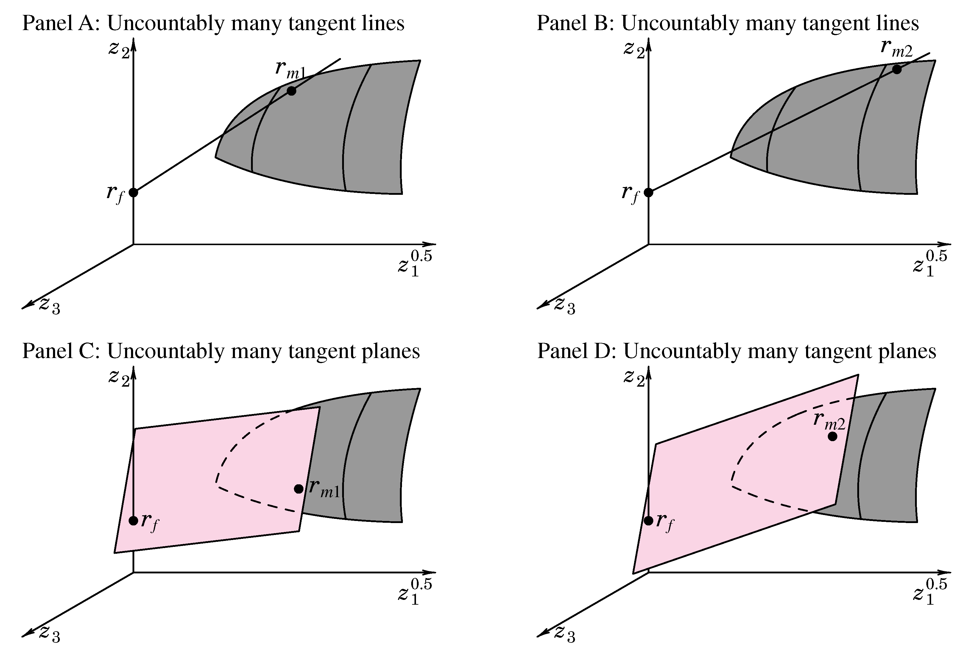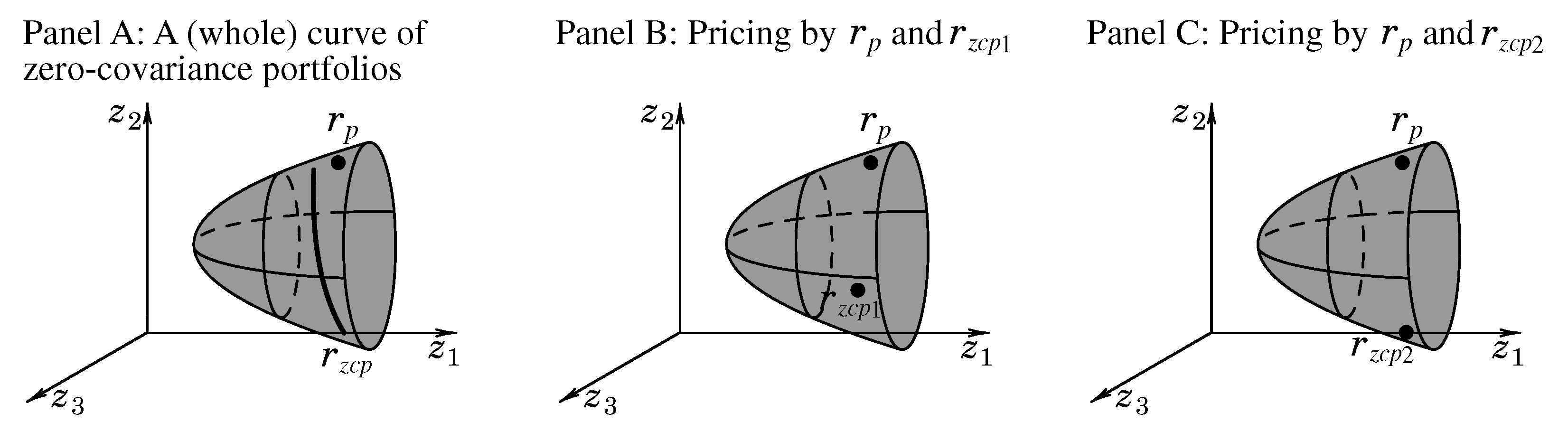 - For the structure, Panels A, B, and C jointly illustrate the leap from portfolio selection to capital asset pricing models and zero-covariance capital asset pricing models.
