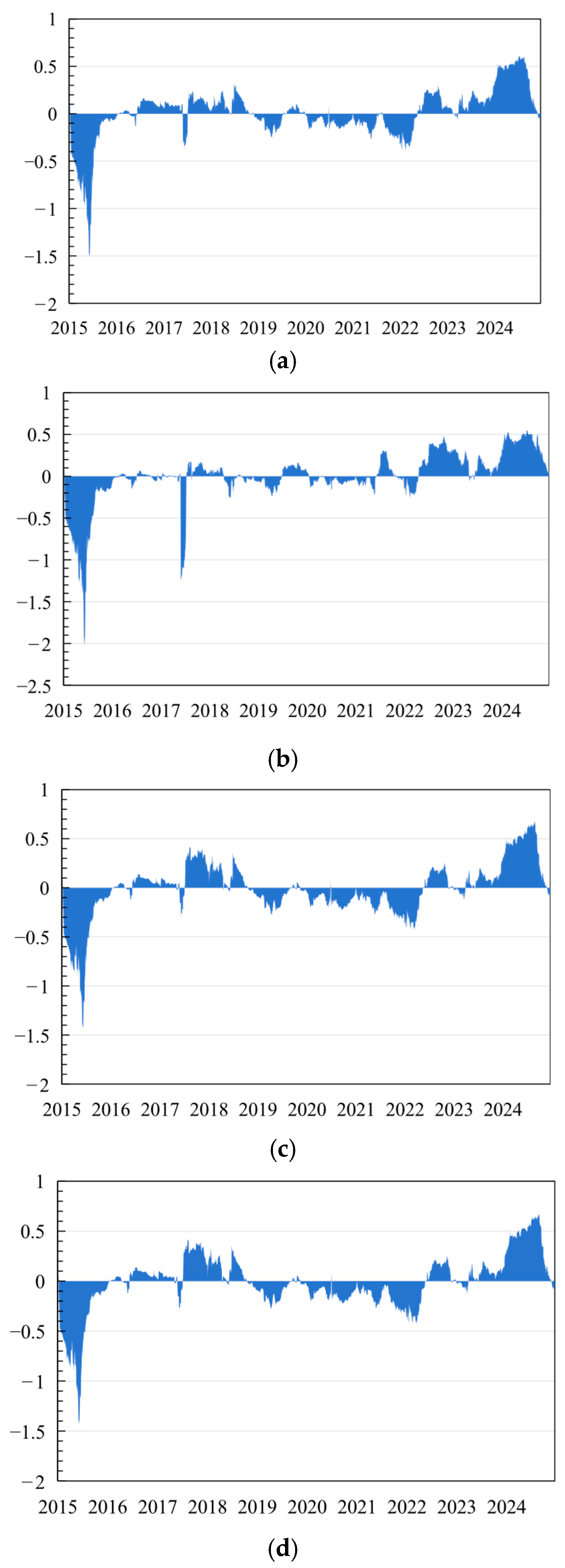 3.2. Time-Varying Characteristics of Internal Risk Contagion in Fintech and Banking