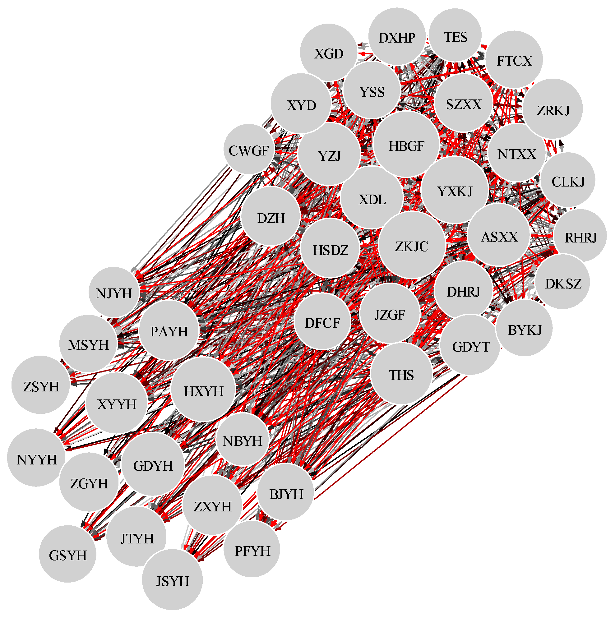 3.4. Risk Contagion Network Analysis of Fintech and Banking