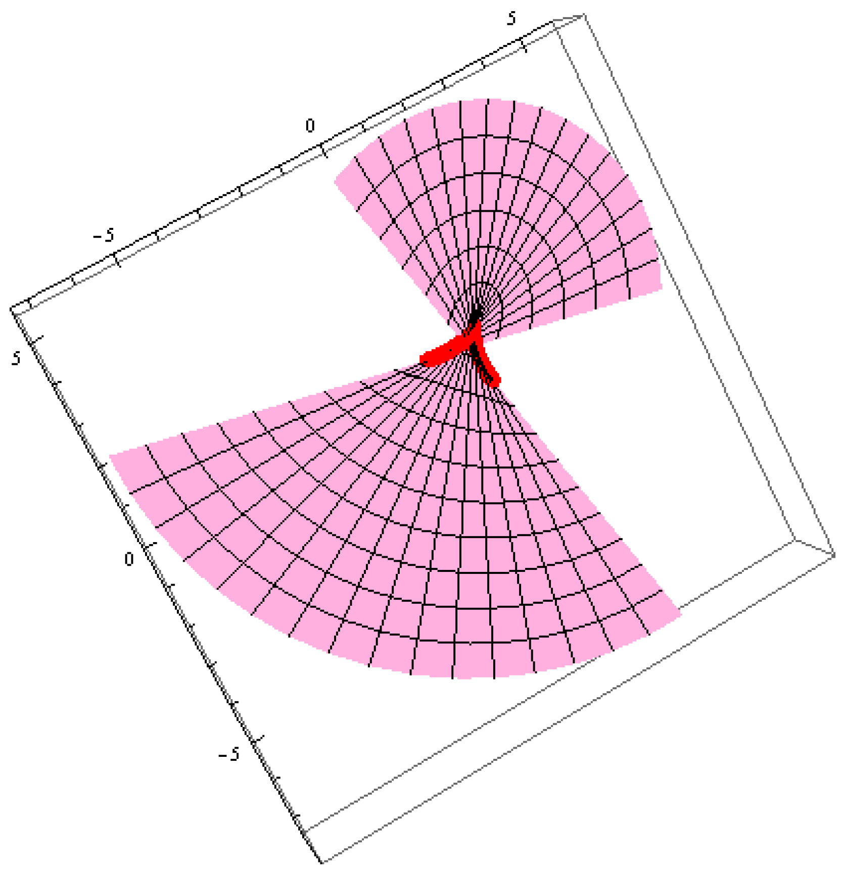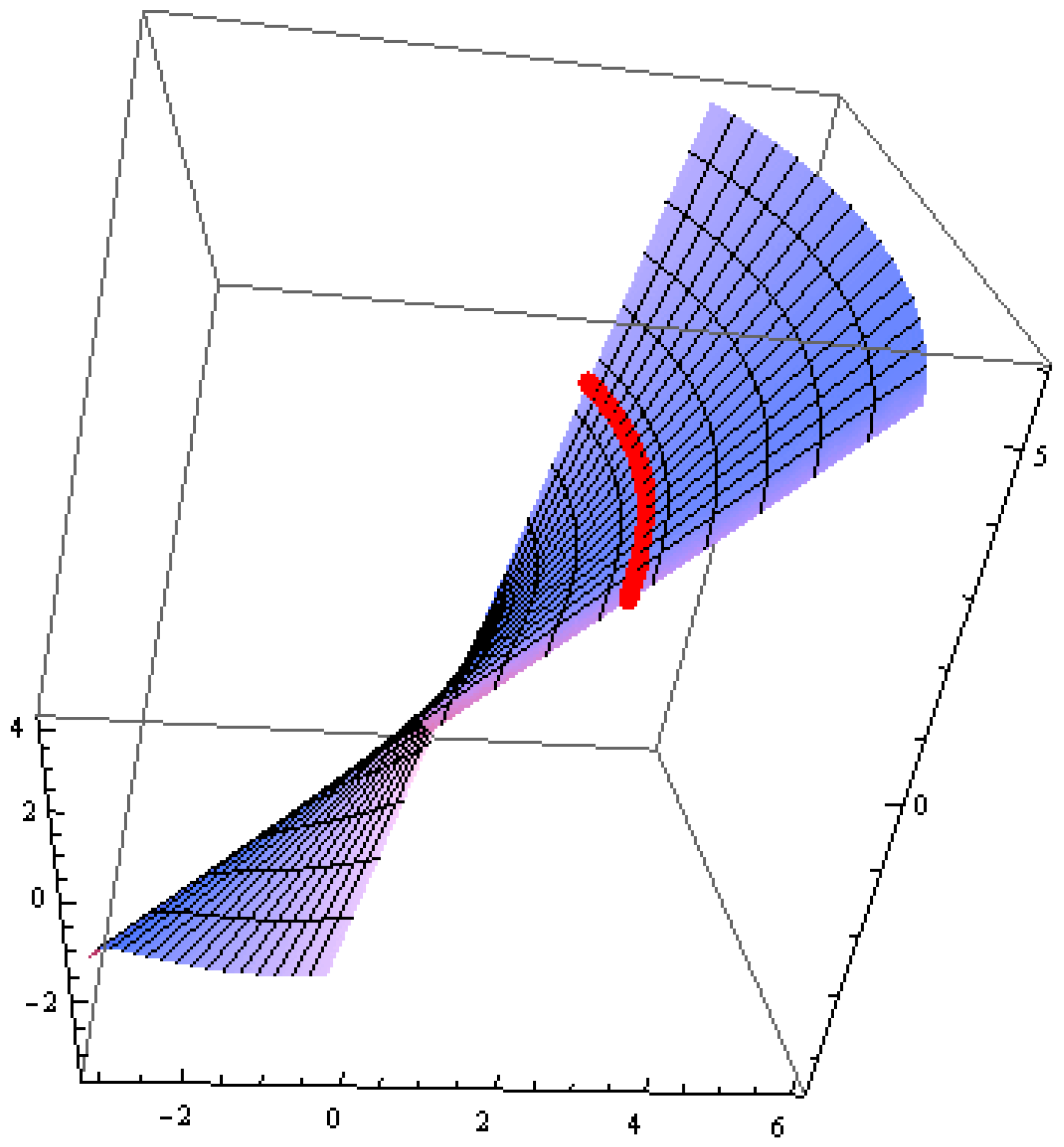 Corollary 2. Let be a smooth curve. The mean curvature of the ruled surface remains constant foralong the striction curve In particular, if , then we obtain the following condition under which the surface has constant mean curvature along a striction curve: Mean Curvature for Developable Surfaces Constructed Using Indicatrix Curves