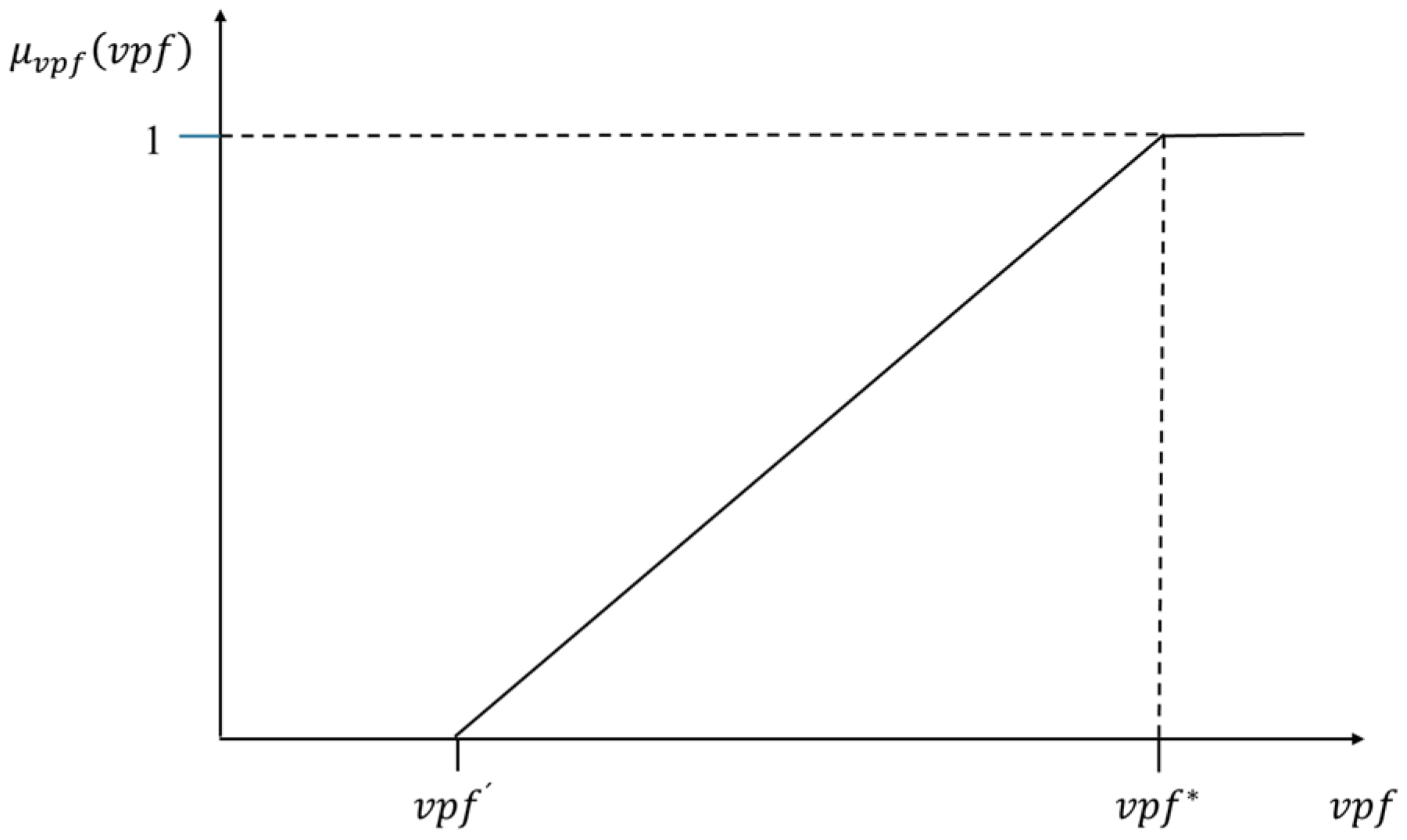 By substituting the definitions of the membership functions into the equation above and solving it, the satisfaction levels of the different decision-makers can be obtained. If these levels do not meet the expectations of all parties, the membership functions or their associated tolerance ranges are adjusted accordingly. This iterative process is repeated until a solution is reached that is deemed satisfactory by all decision-makers involved [