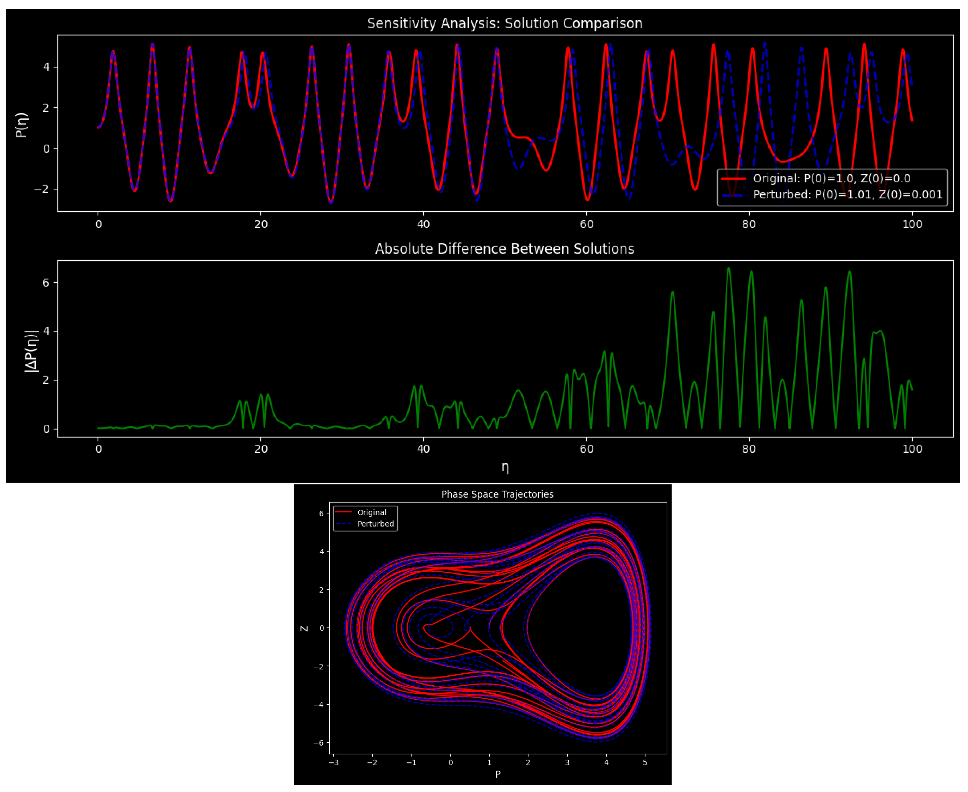 Z plane that reflect enhanced sensitivity to initial conditions and potential stochastic resonance phenomena.