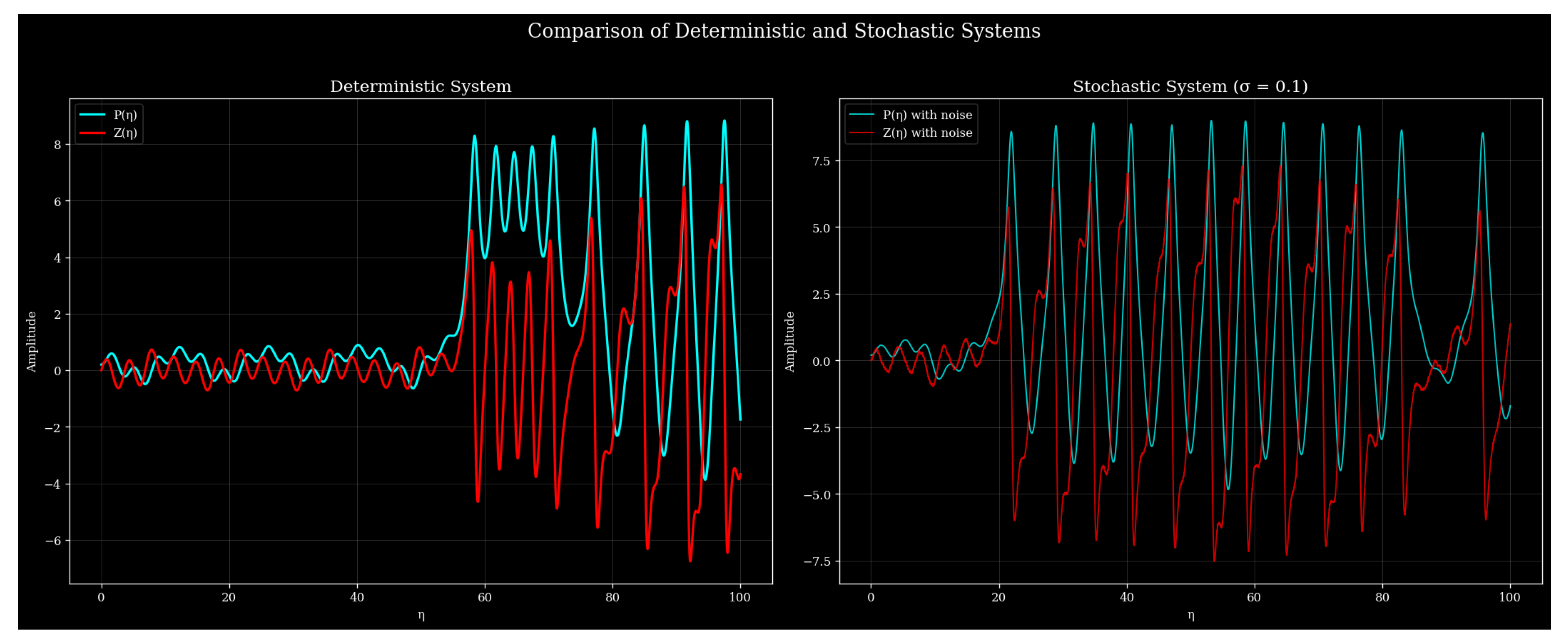 . This stochastic term introduces random fluctuations, which can dramatically alter system dynamics, pushing them from regular periodic behavior to chaotic or even probabilistically governed regimes. The deterministic version of this equation (with