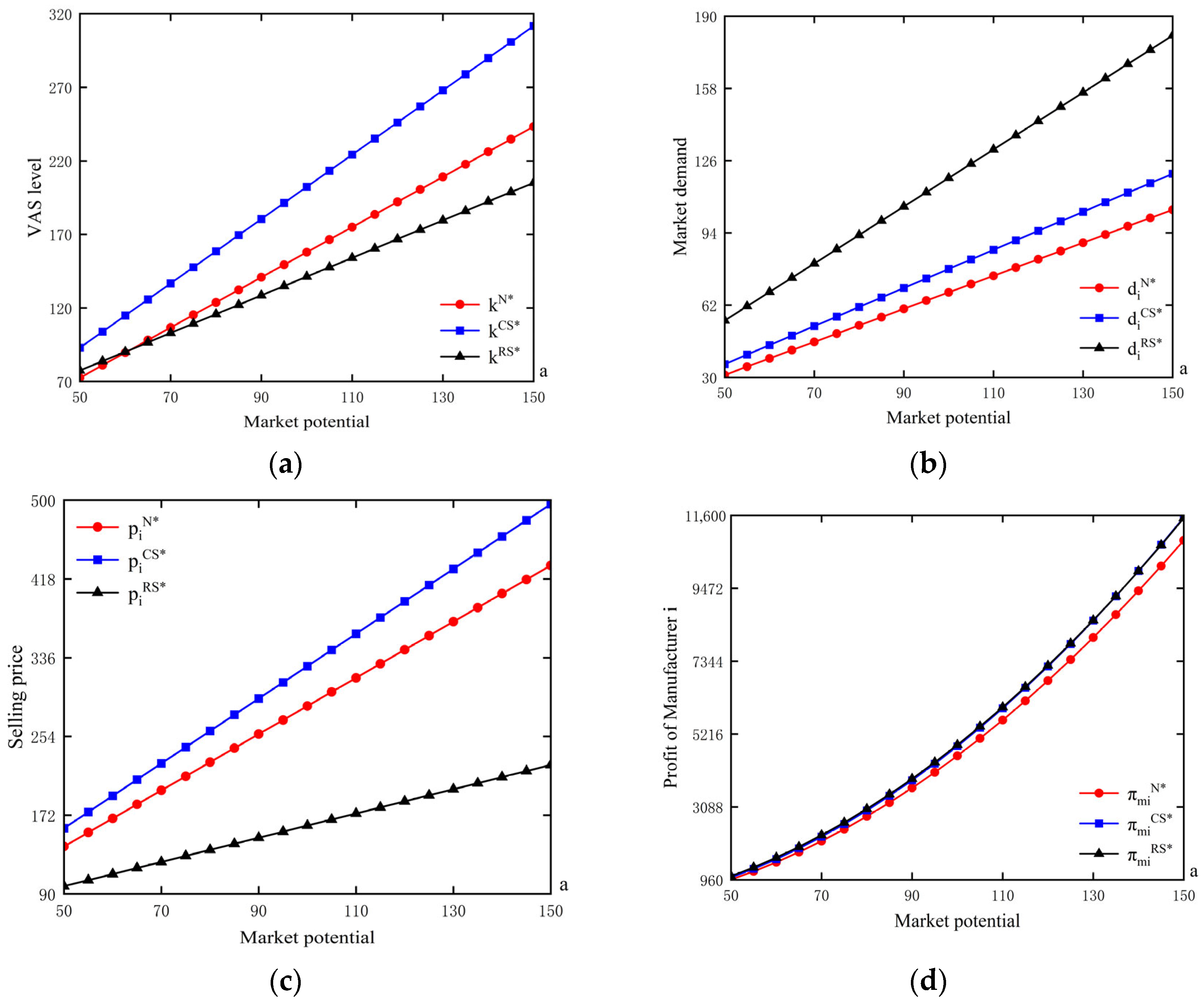5.2. The Impact of Sensitivity of Demand to the VAS Level