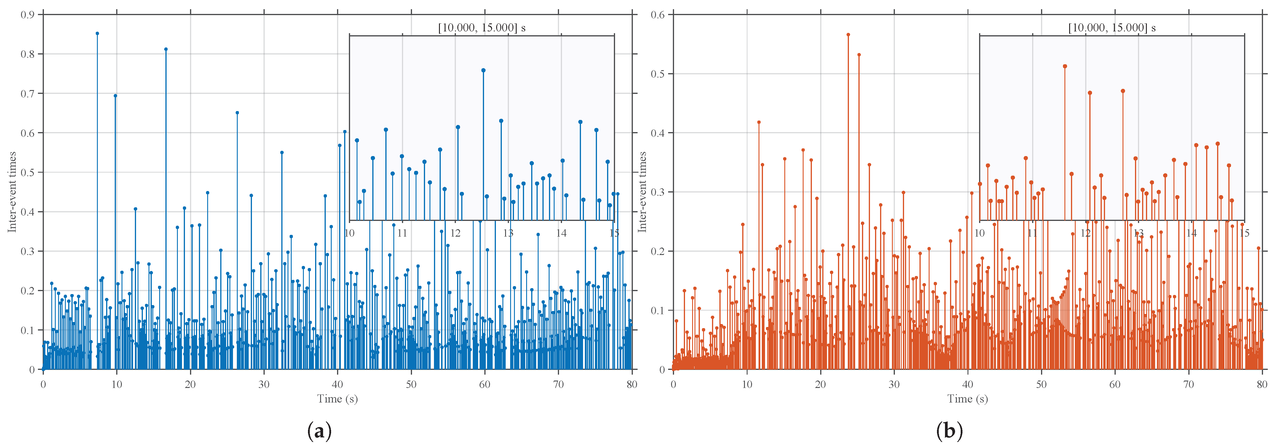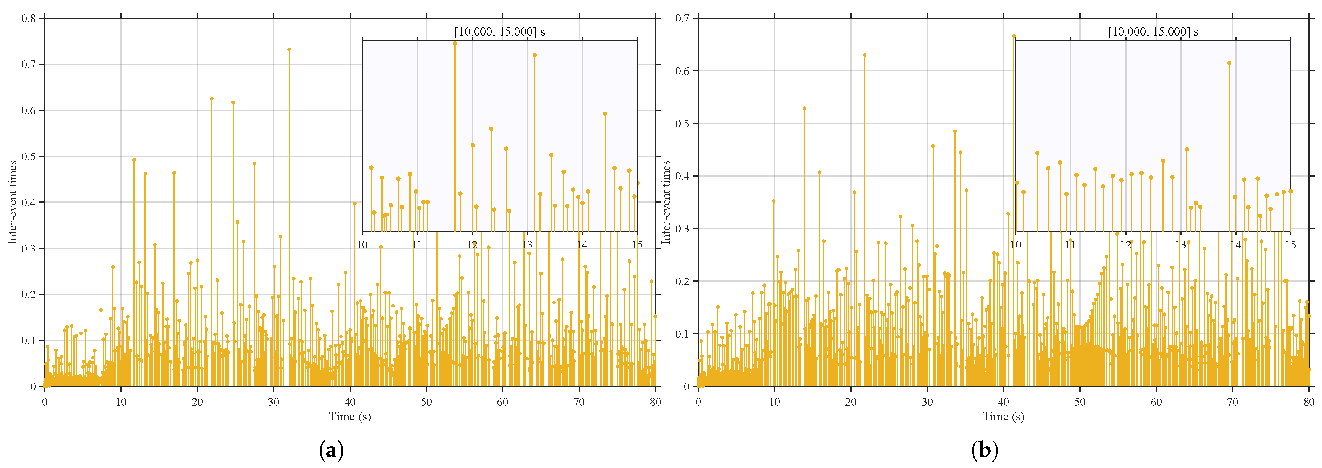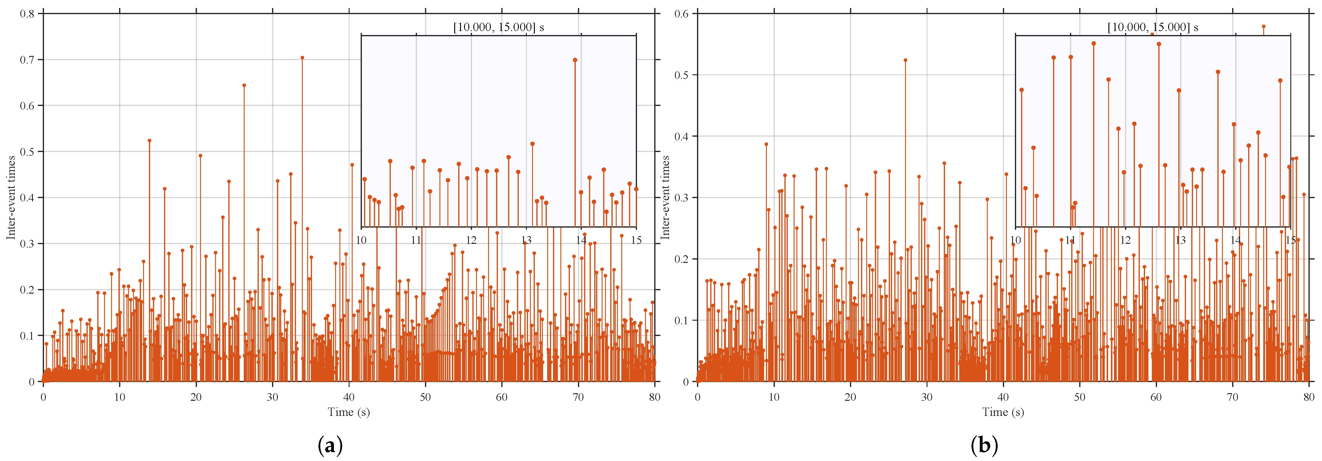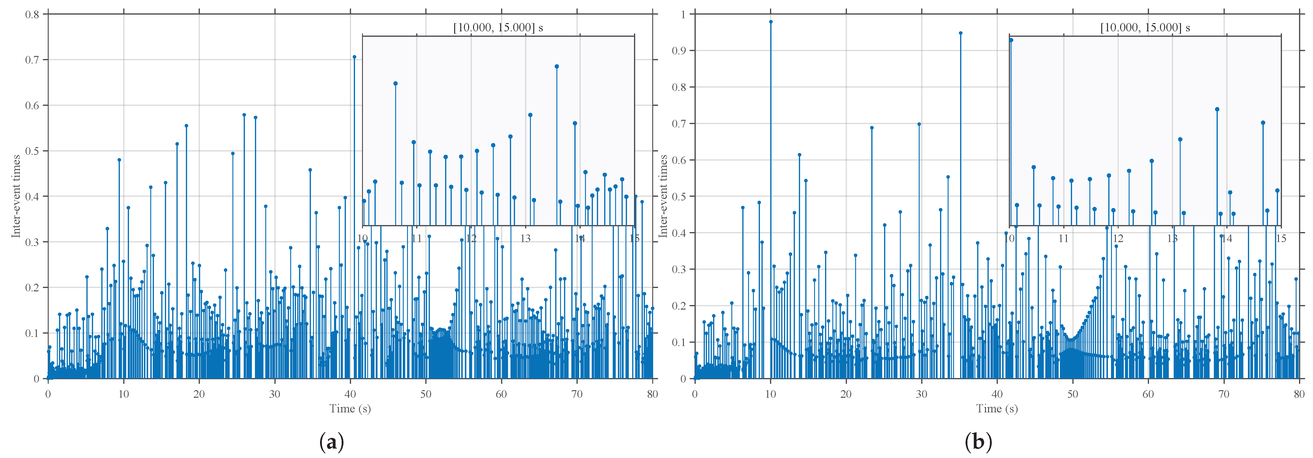 - Girard, A. Dynamic Triggering Mechanisms for Event-Triggered Control. IEEE Trans. Autom. Contr. 2015, 60, 1992–1997. [Google Scholar] [CrossRef]