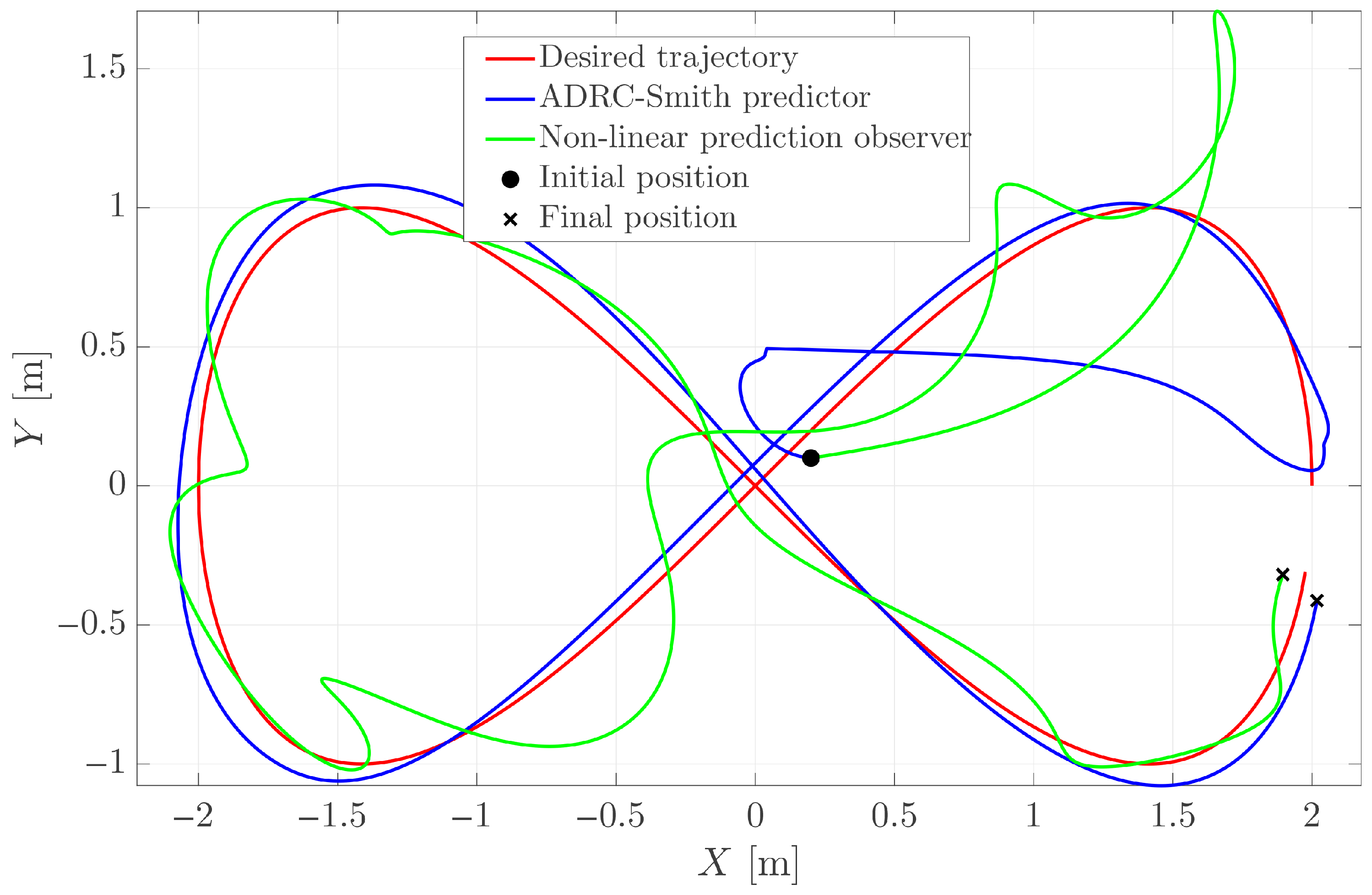 Figure 11 shows that the desired trajectory has not been followed correctly, and the position errors have increased. Therefore, for this system in particular, the maximum delay it can handle without affecting performance is