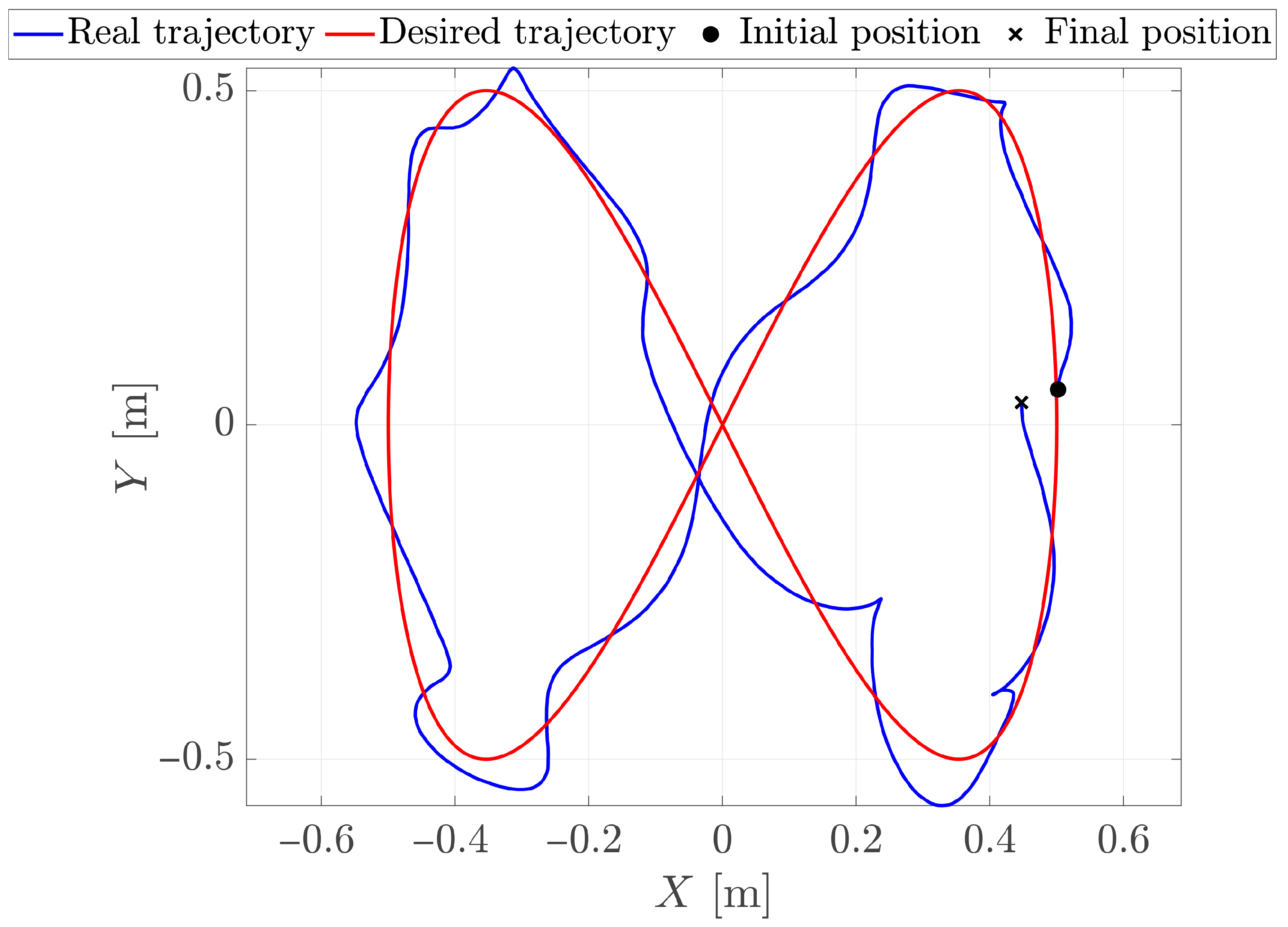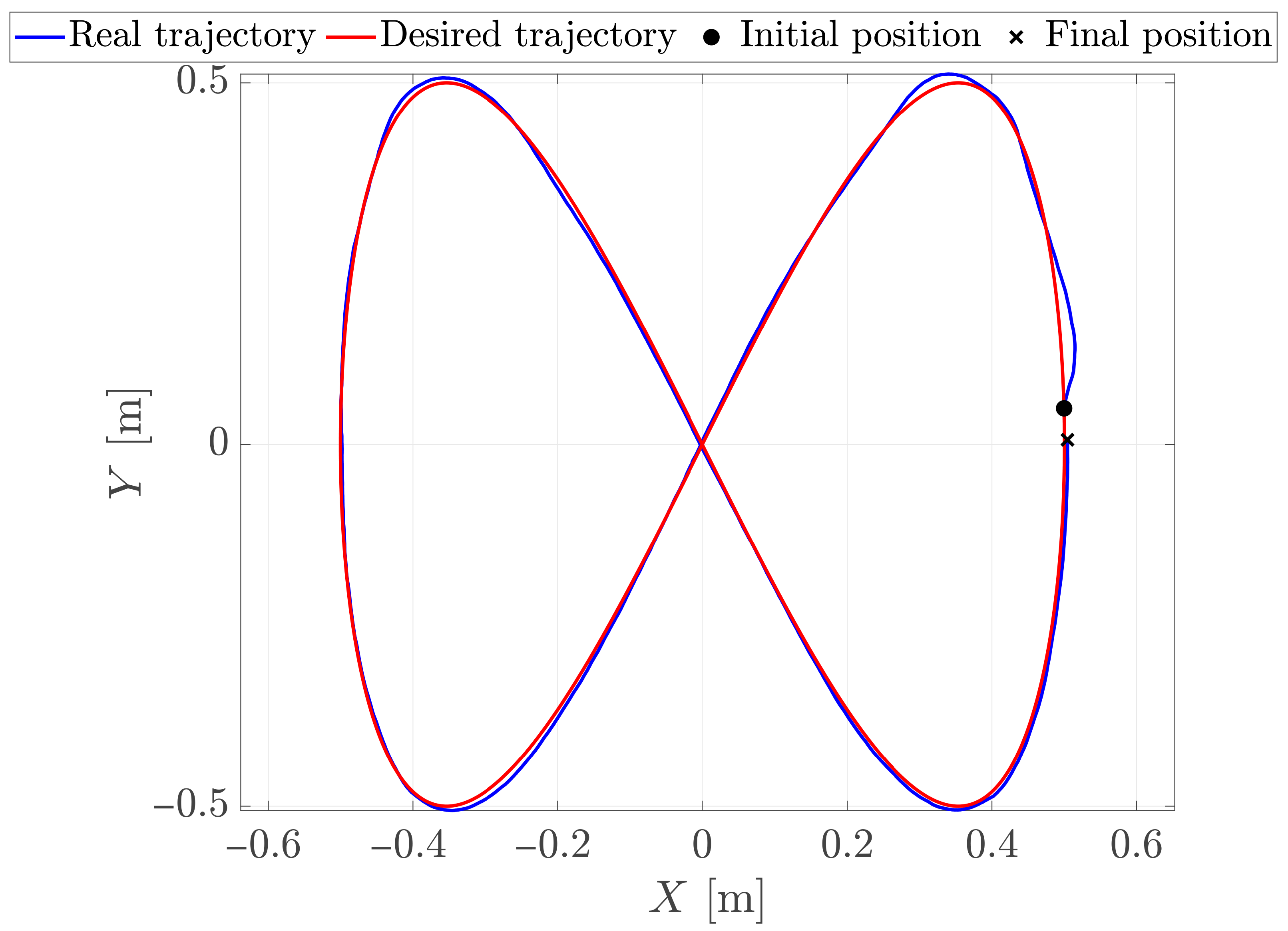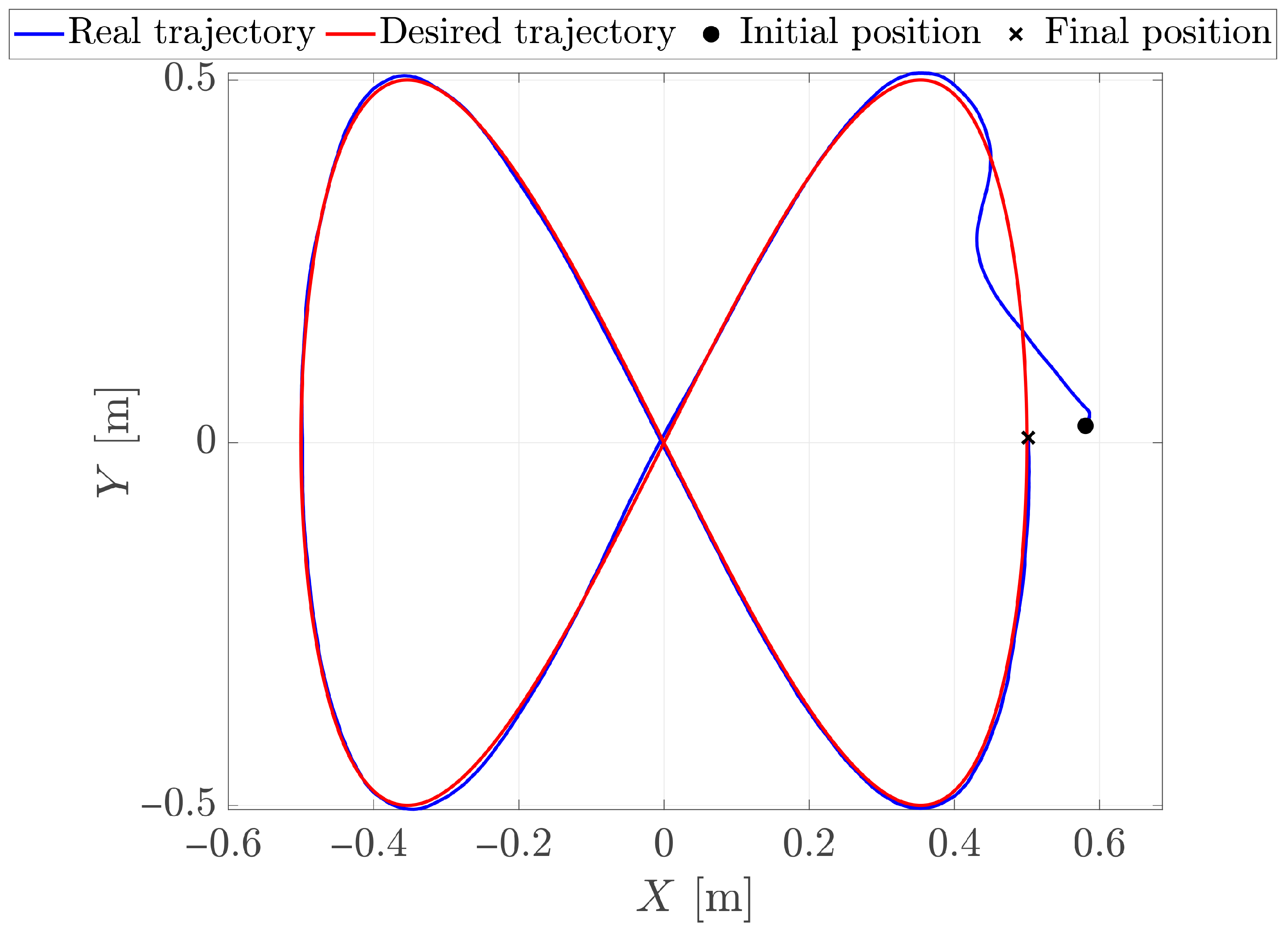 The desired trajectory is a Lissajous curve given by the following parametric functions: