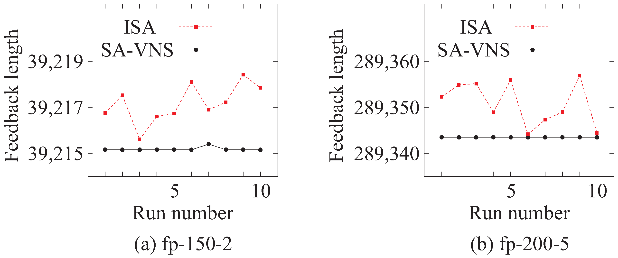 fp-200-5. As can be seen, SA-VNS consistently yielded better quality solutions than the ISA algorithm. The results in