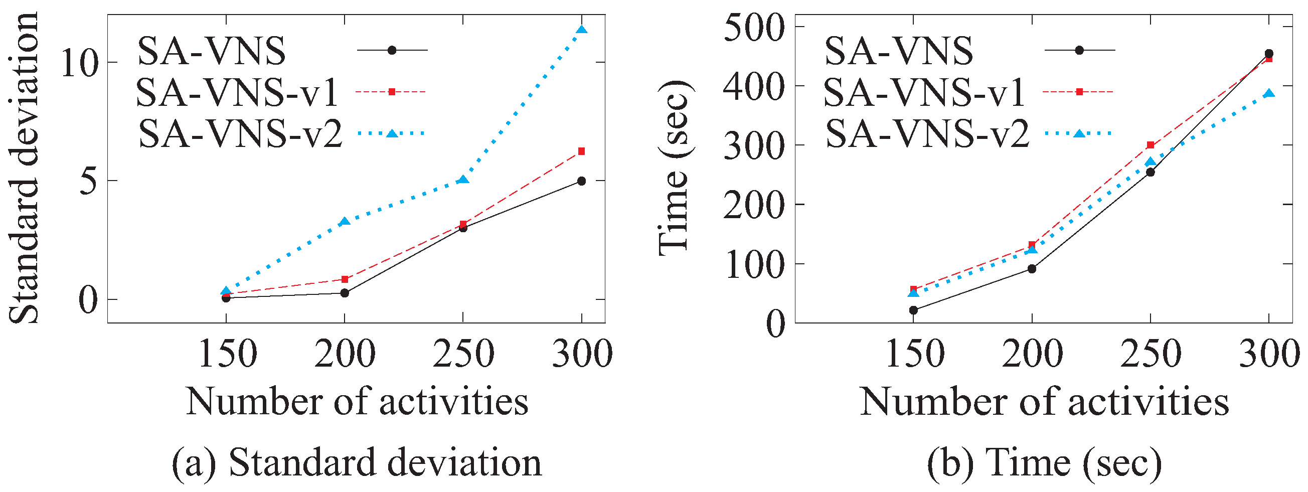 Figure 8, all three algorithms required very similar computation times. Overall, these results demonstrate that SA-VNS significantly outperforms its variants SA-VNS-v1 and SA-VNS-v2.